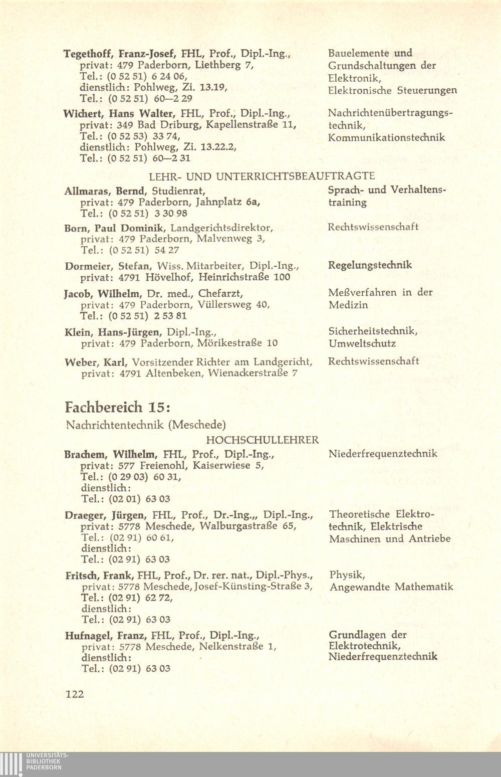 Personal- und Vorlesungsverzeichnis für die Gesamthochschule Paderborn