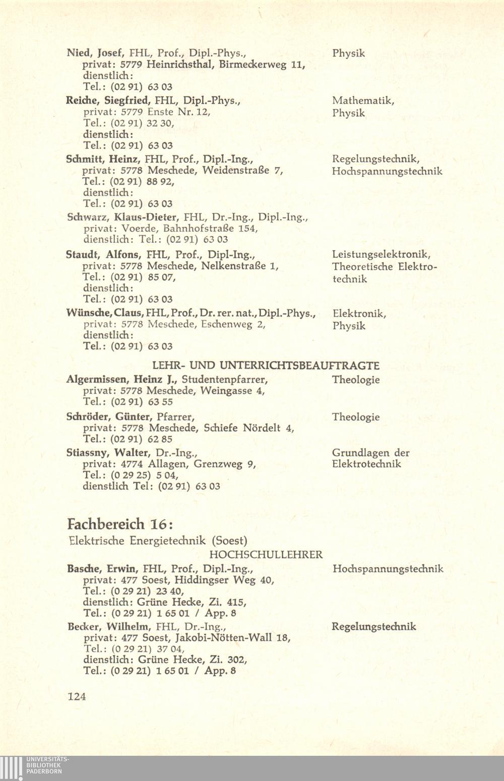Personal- und Vorlesungsverzeichnis für die Gesamthochschule Paderborn