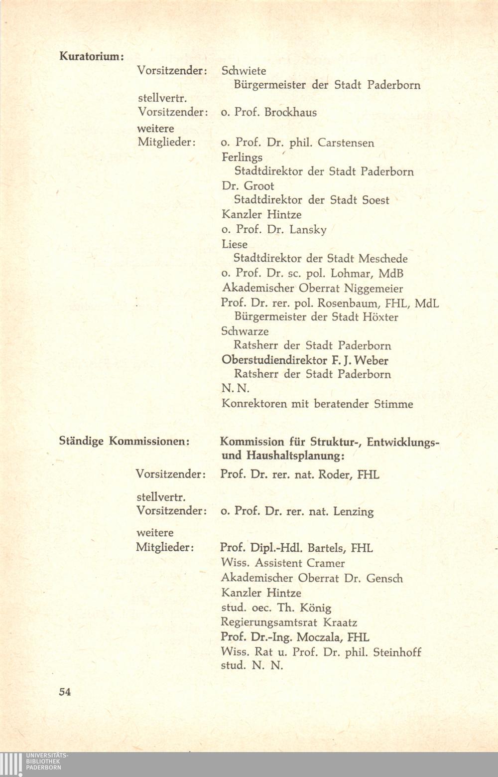 Personal- und Vorlesungsverzeichnis für die Gesamthochschule Paderborn