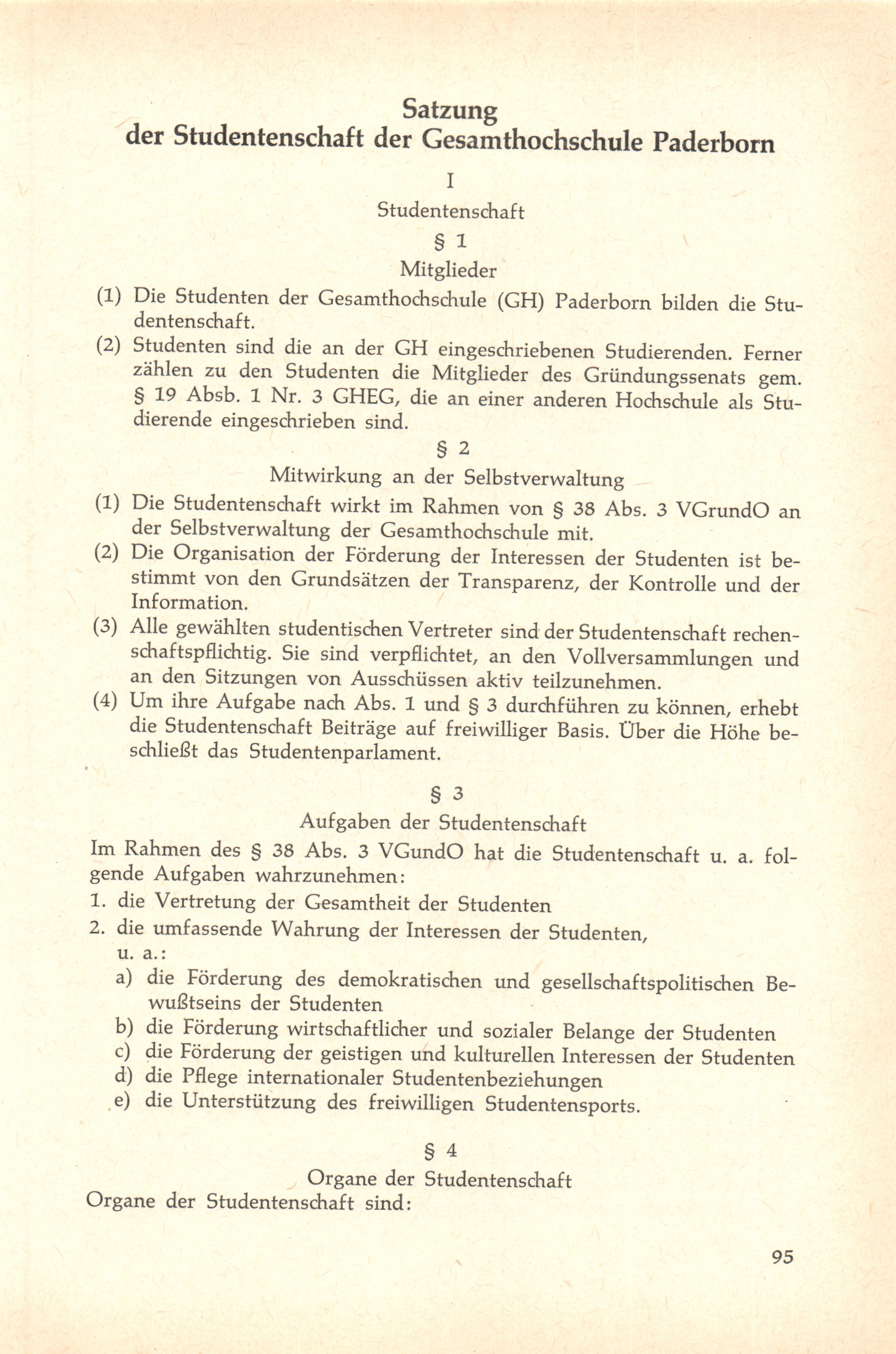 Satzung der Studentenschaft der Gesamthochschule Paderborn