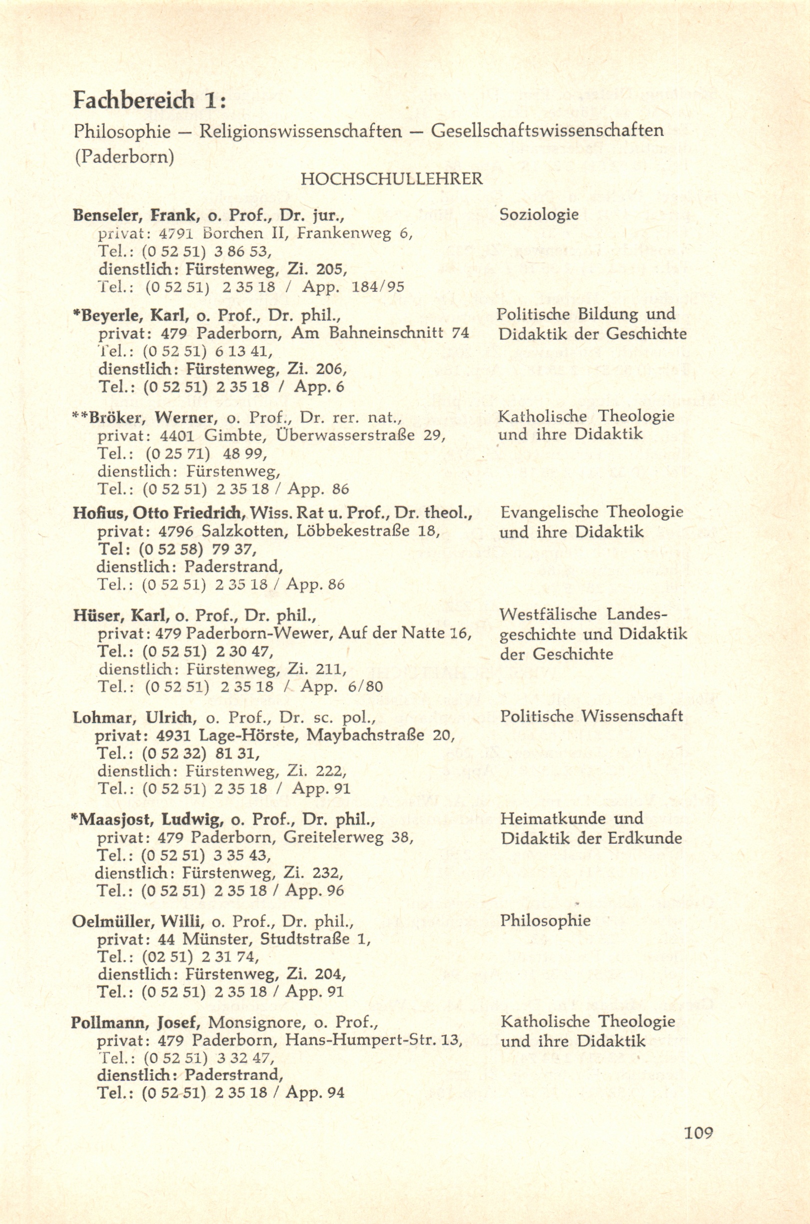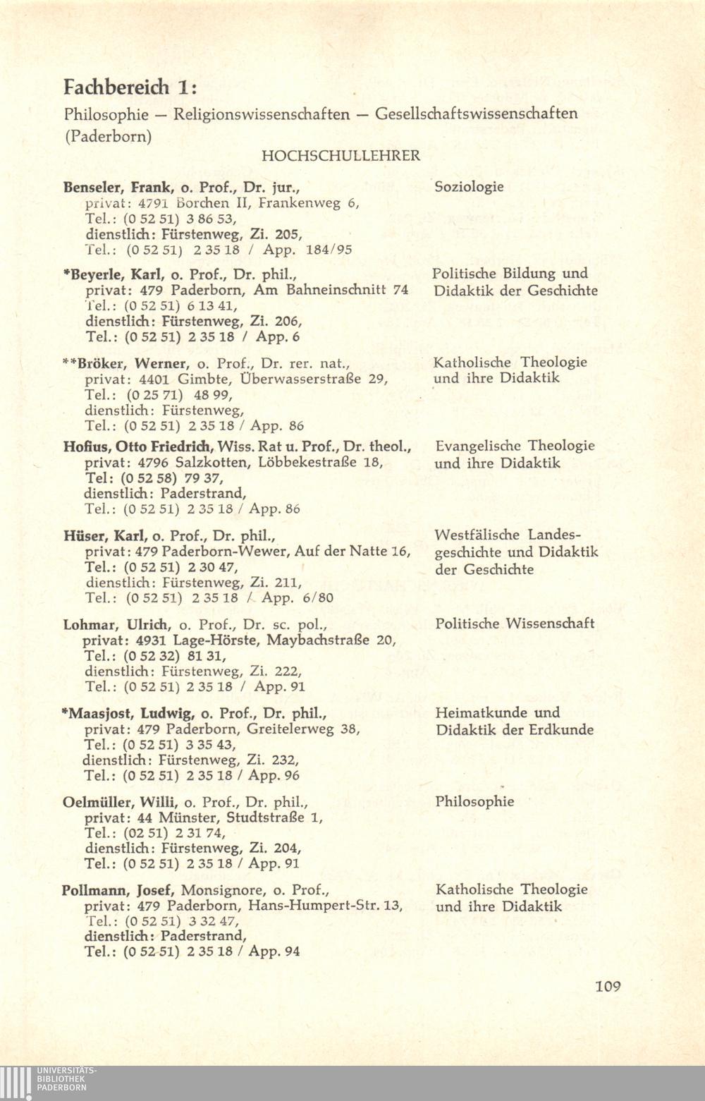 Personal- und Vorlesungsverzeichnis für die Gesamthochschule Paderborn