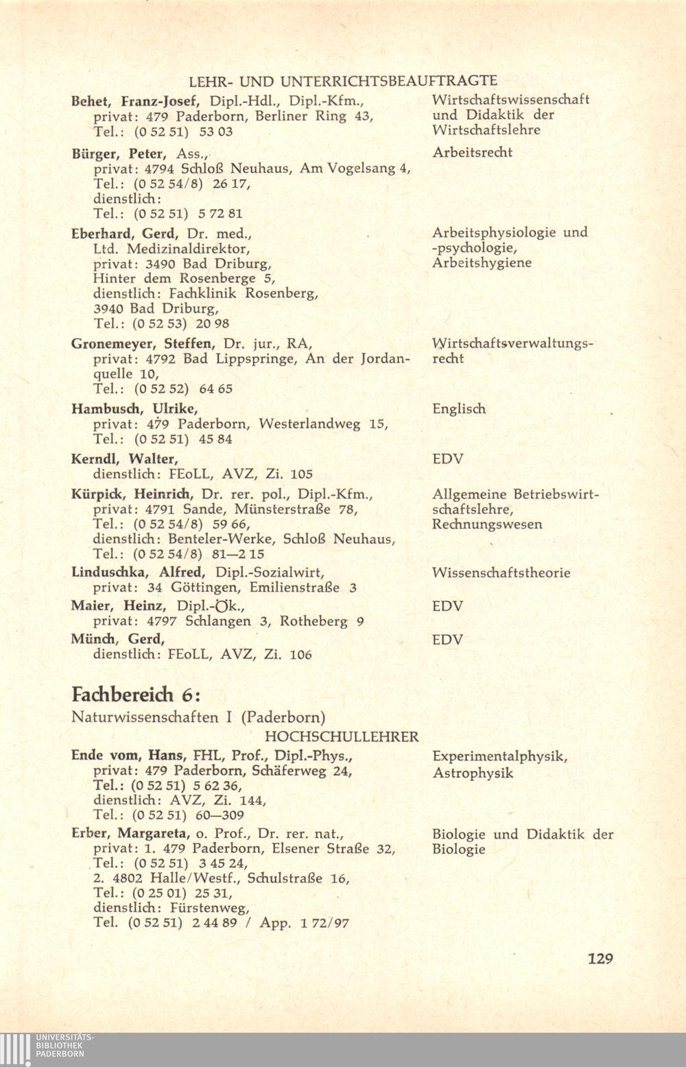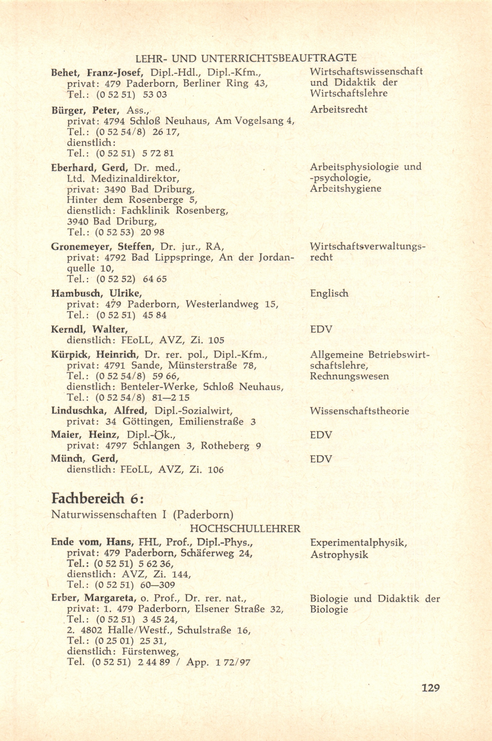 Personal- und Vorlesungsverzeichnis für die Gesamthochschule Paderborn