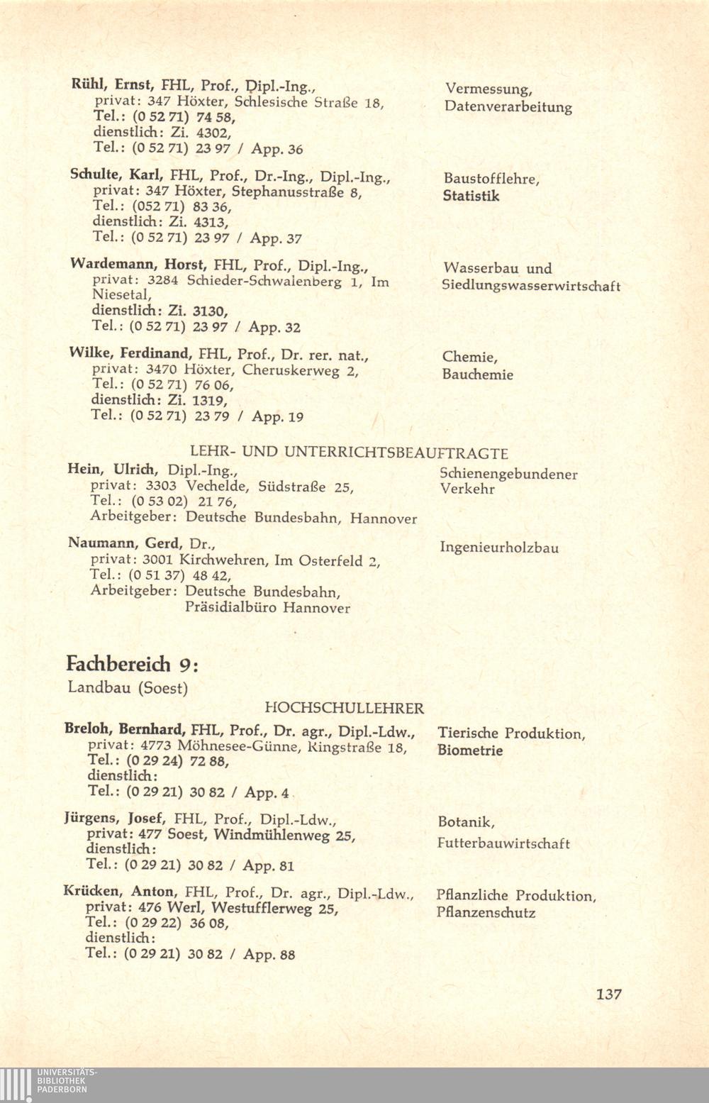 Personal- und Vorlesungsverzeichnis für die Gesamthochschule Paderborn