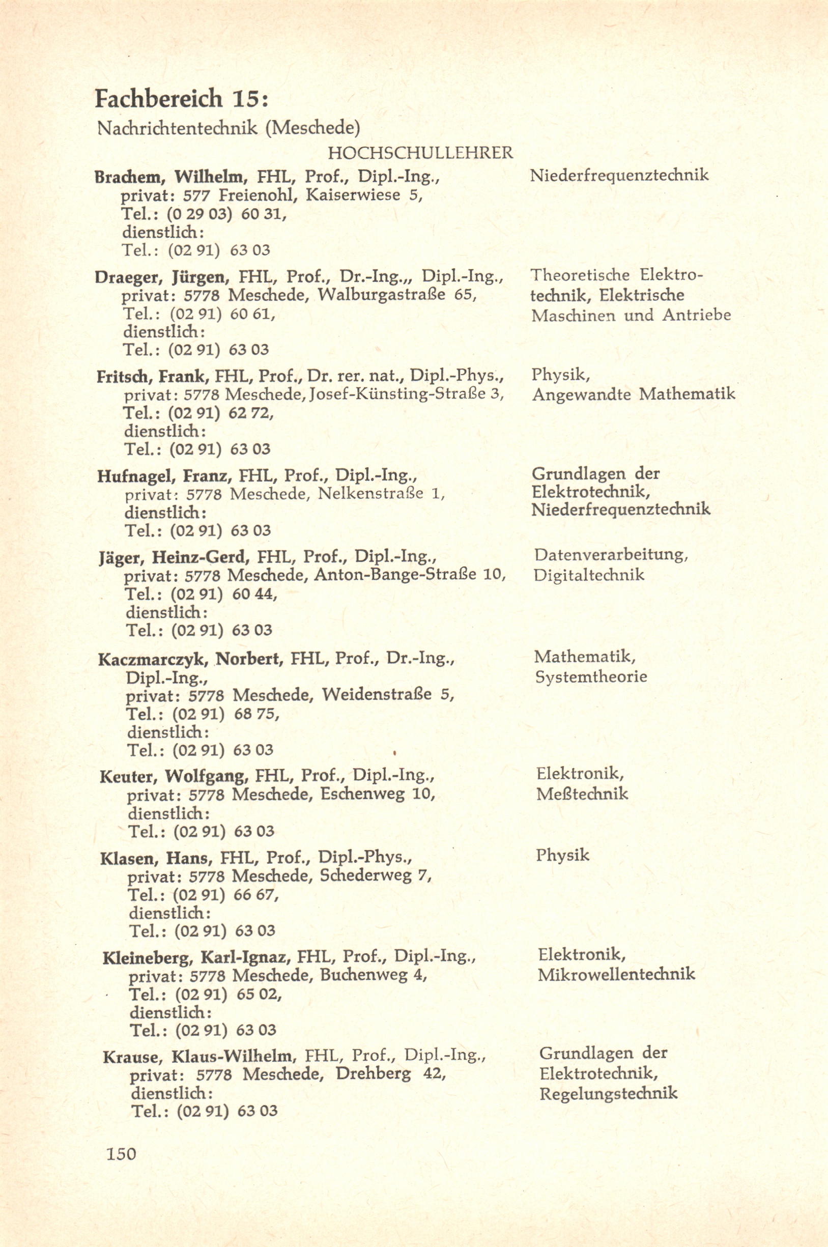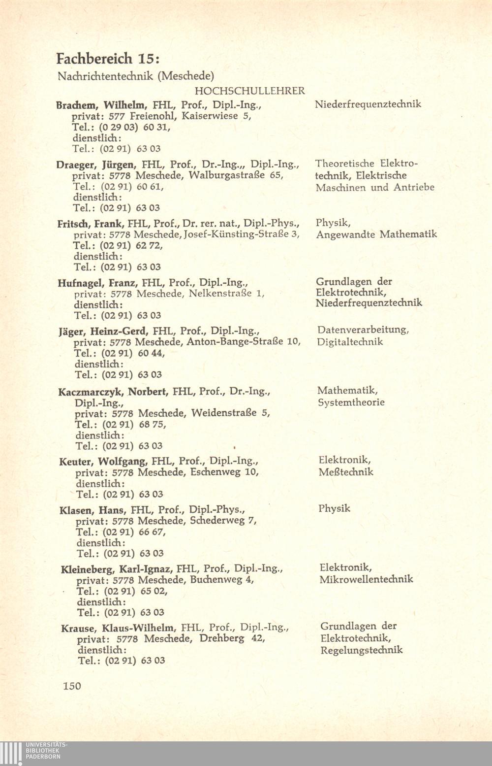 Fachbereich 15: Nachrichtentechnik (Meschede)