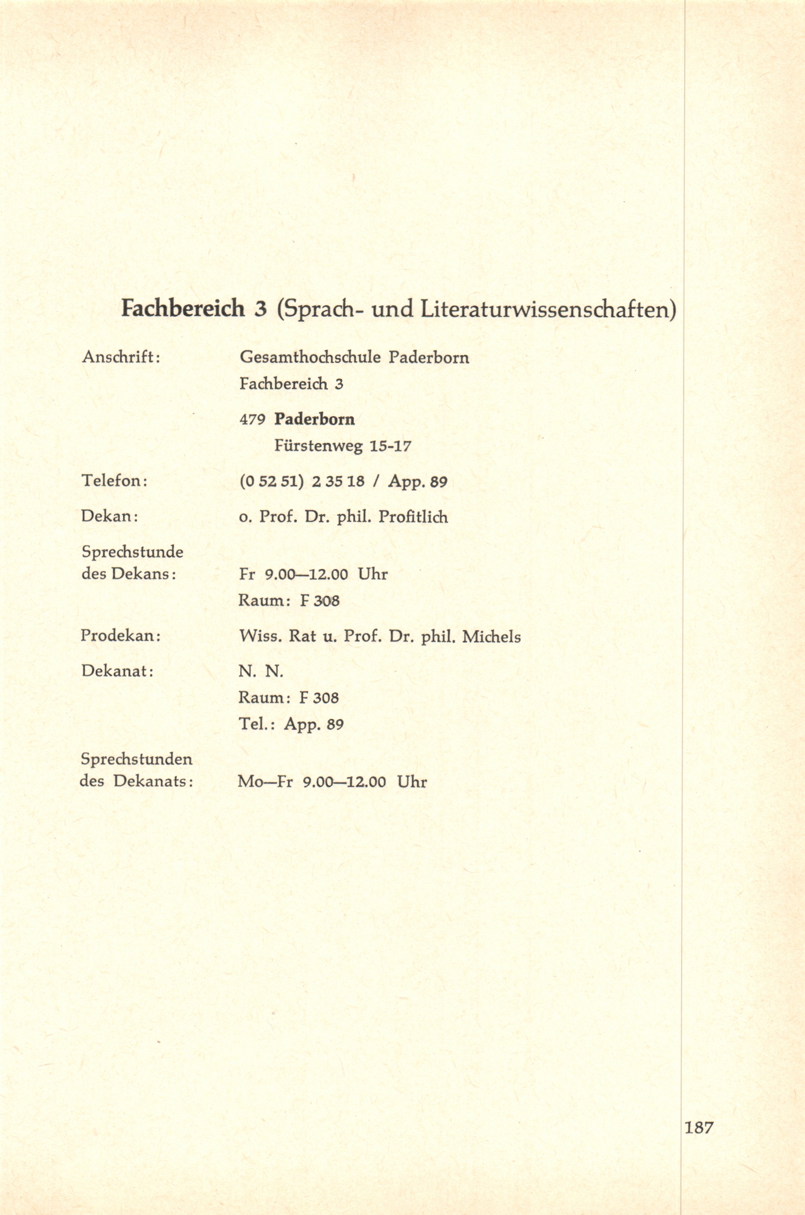 Personal- und Vorlesungsverzeichnis für die Gesamthochschule Paderborn