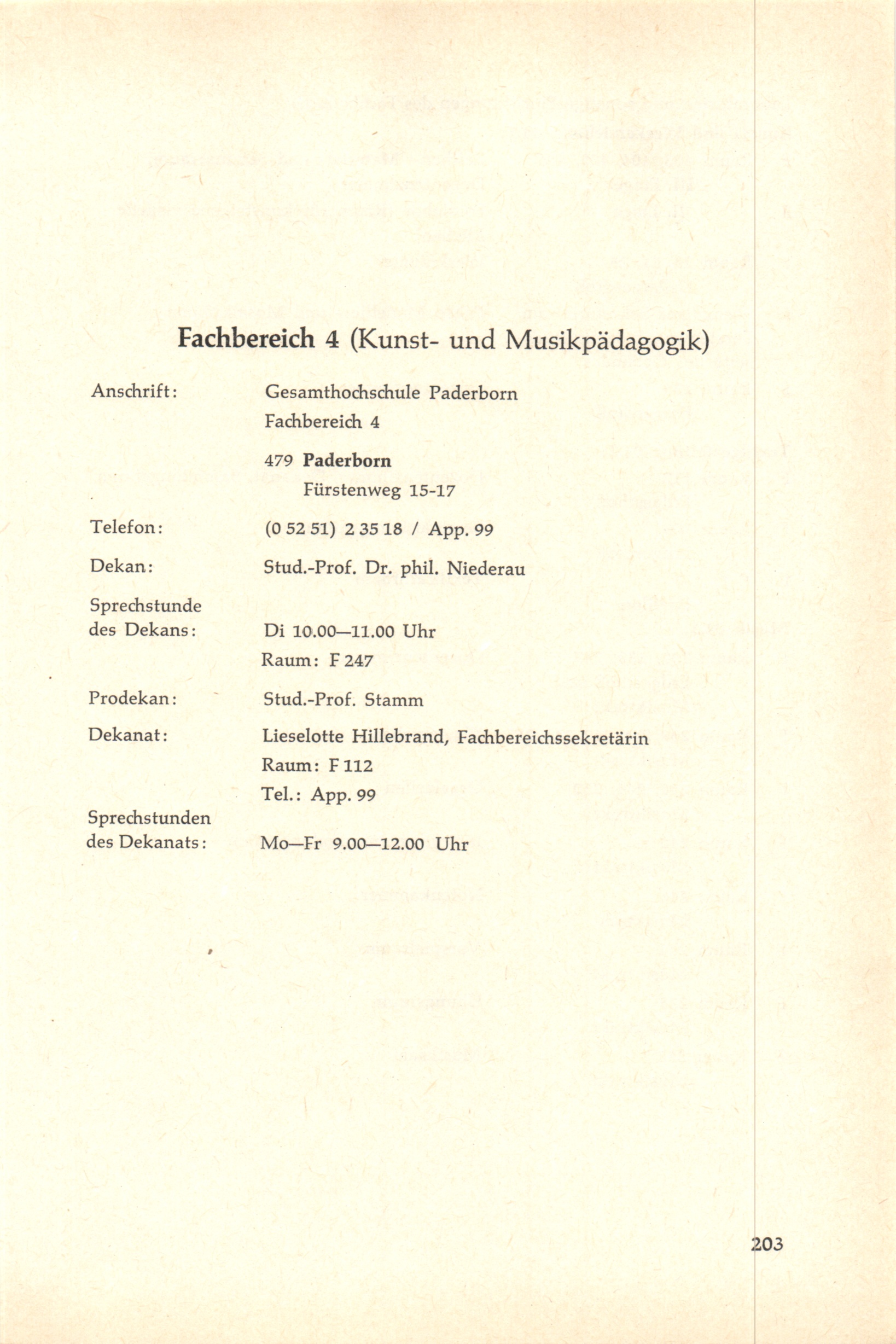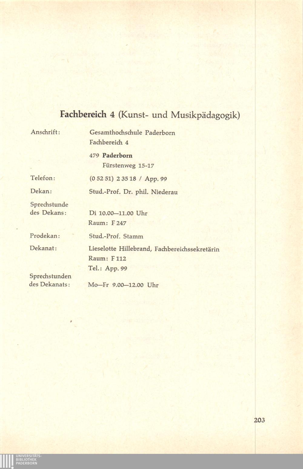 Personal- und Vorlesungsverzeichnis für die Gesamthochschule Paderborn