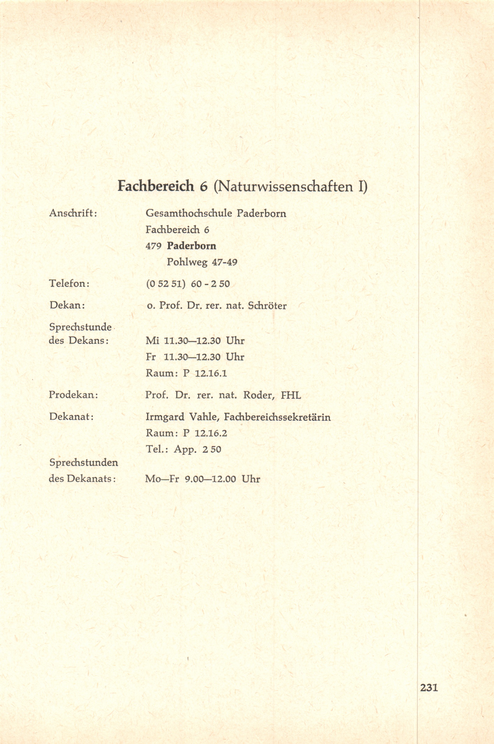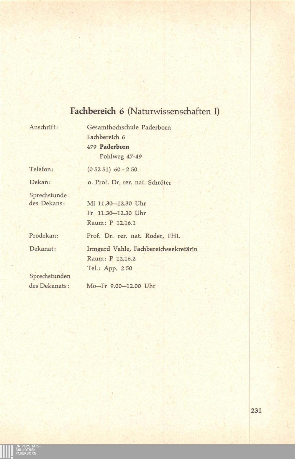 Personal- und Vorlesungsverzeichnis für die Gesamthochschule Paderborn