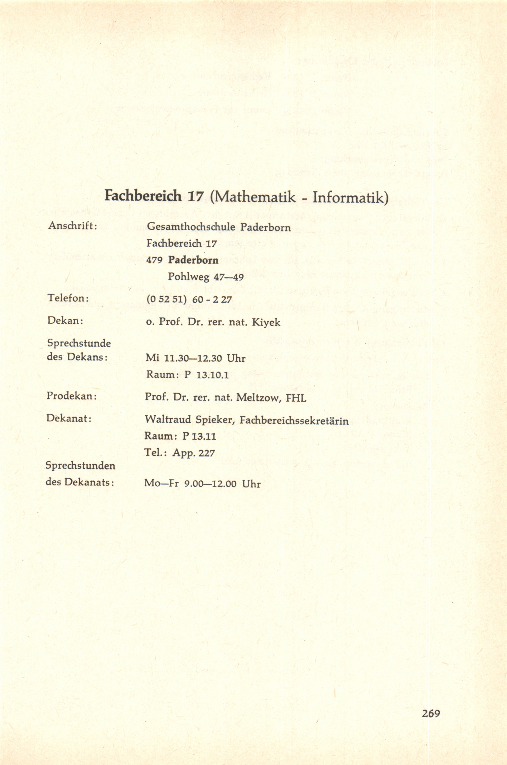 Personal- und Vorlesungsverzeichnis für die Gesamthochschule Paderborn