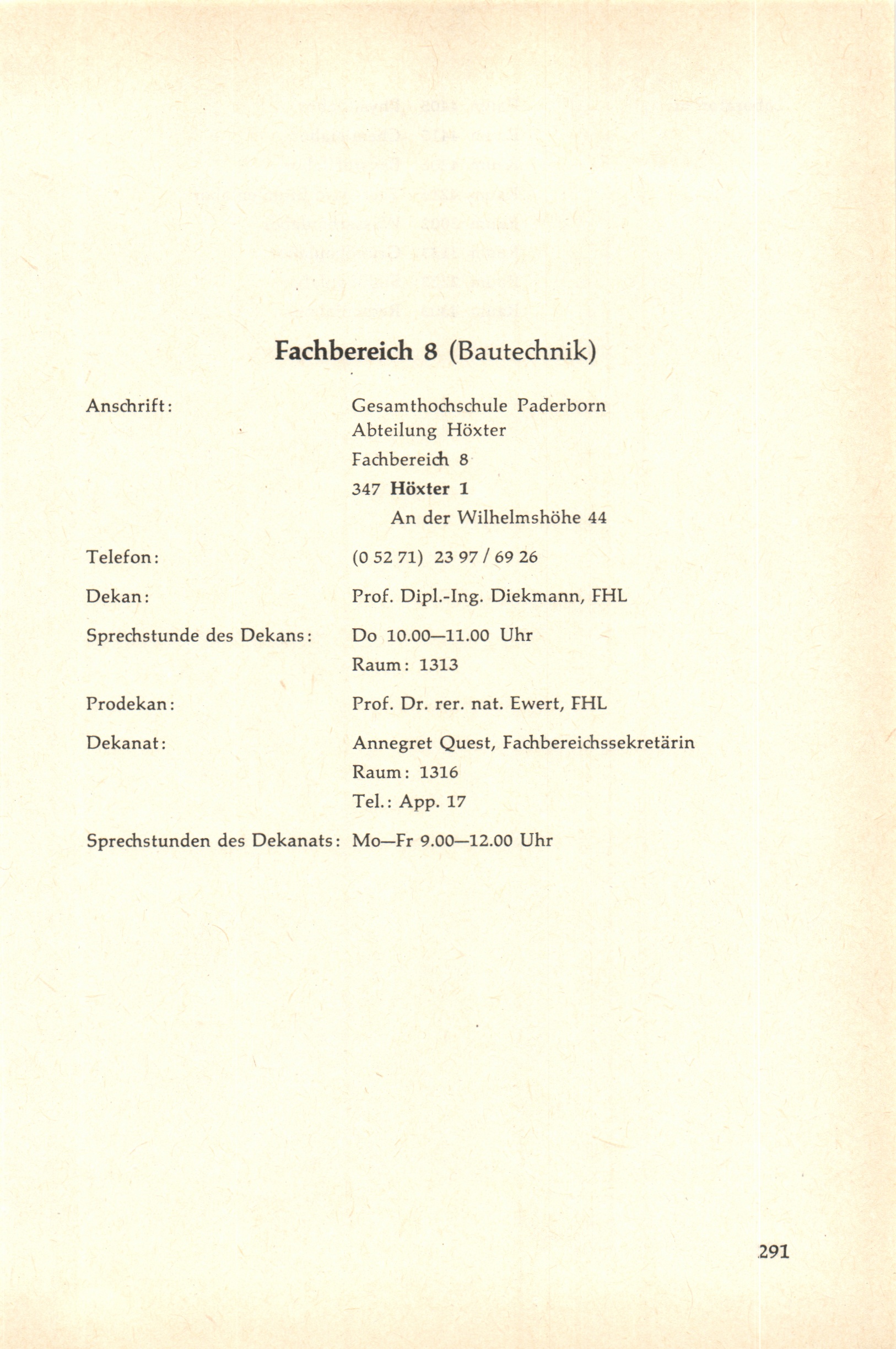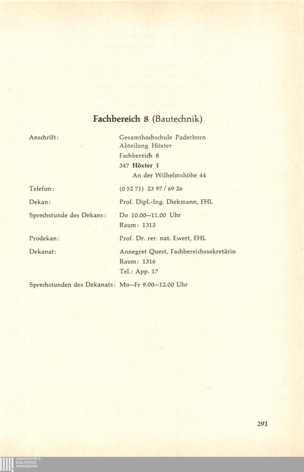 Personal- und Vorlesungsverzeichnis für die Gesamthochschule Paderborn