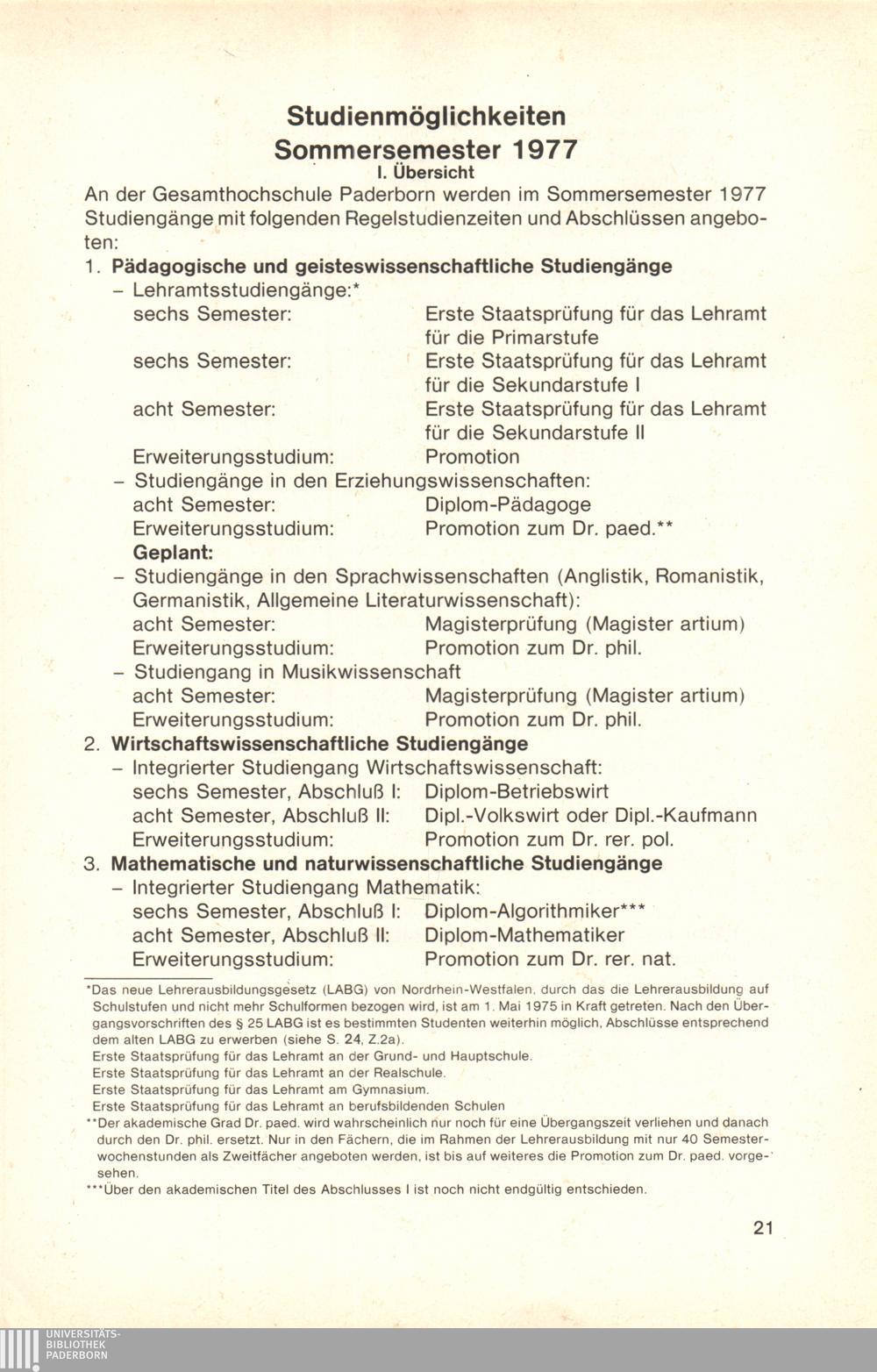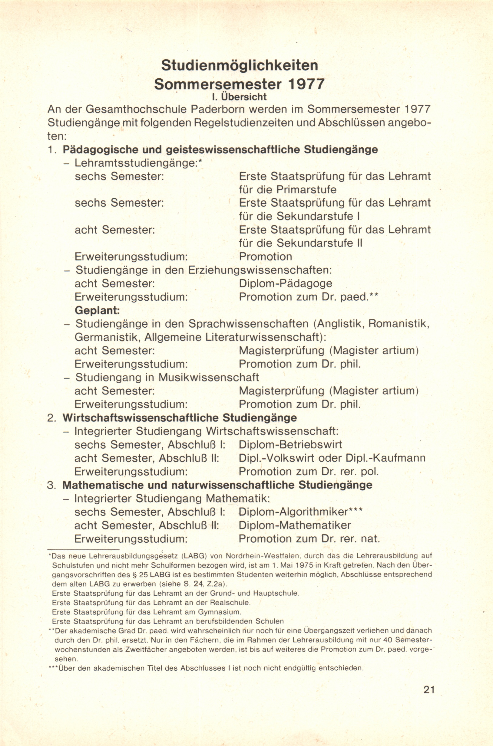 Personal- und Vorlesungsverzeichnis für die Gesamthochschule Paderborn