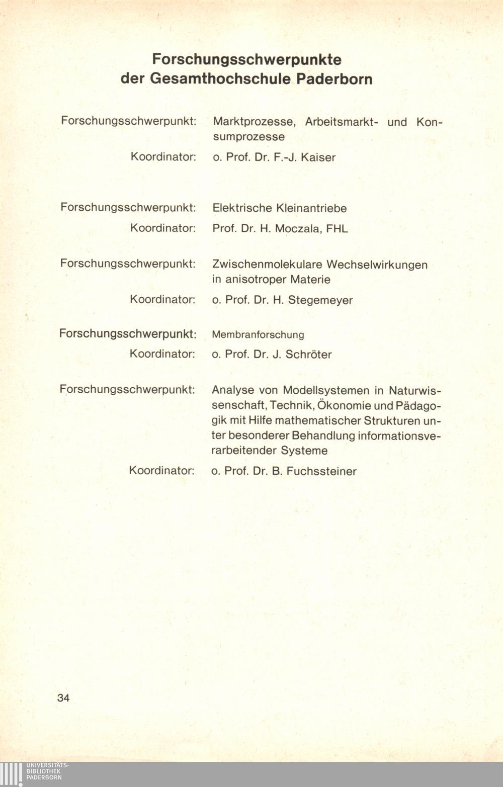 Personal- und Vorlesungsverzeichnis für die Gesamthochschule Paderborn