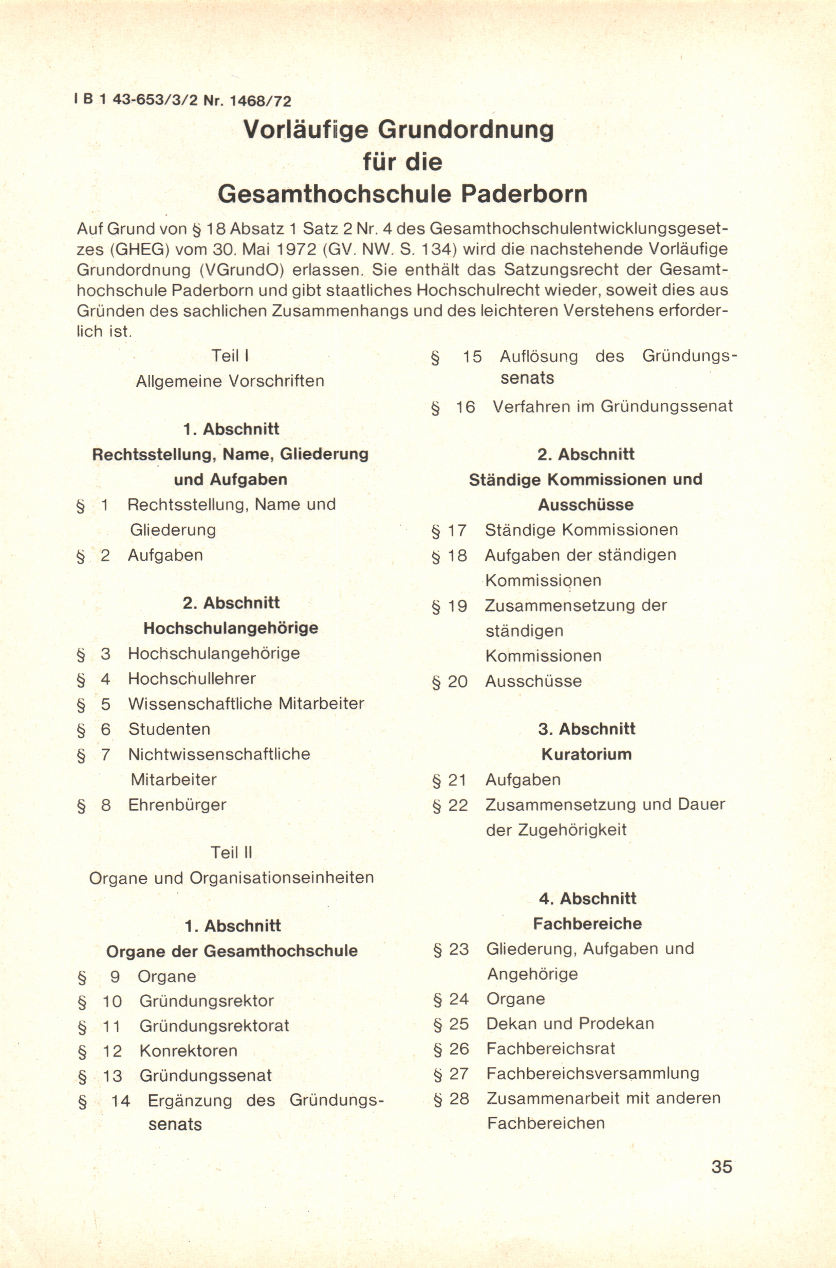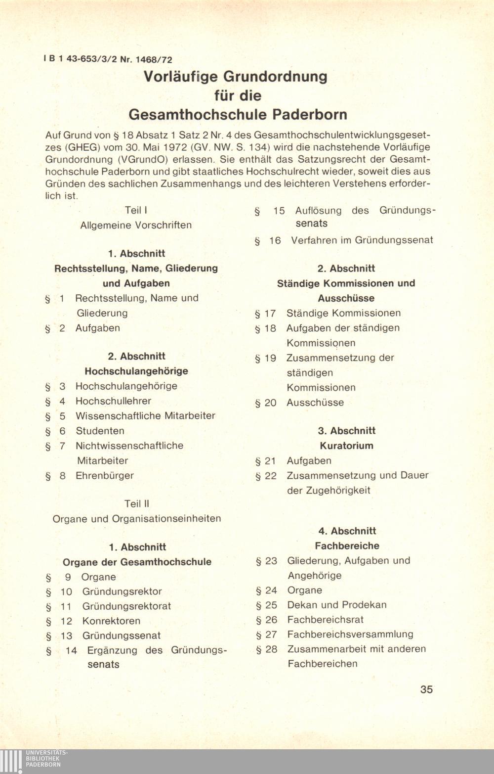 Vorläufige Grundordnung