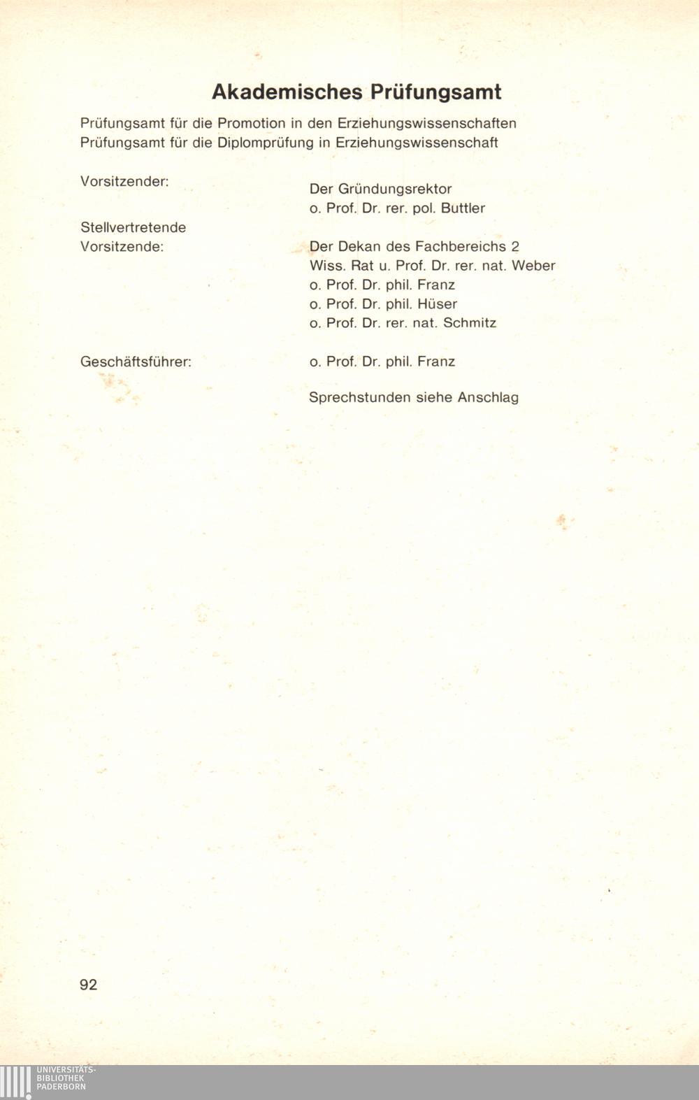 Personal- und Vorlesungsverzeichnis für die Gesamthochschule Paderborn