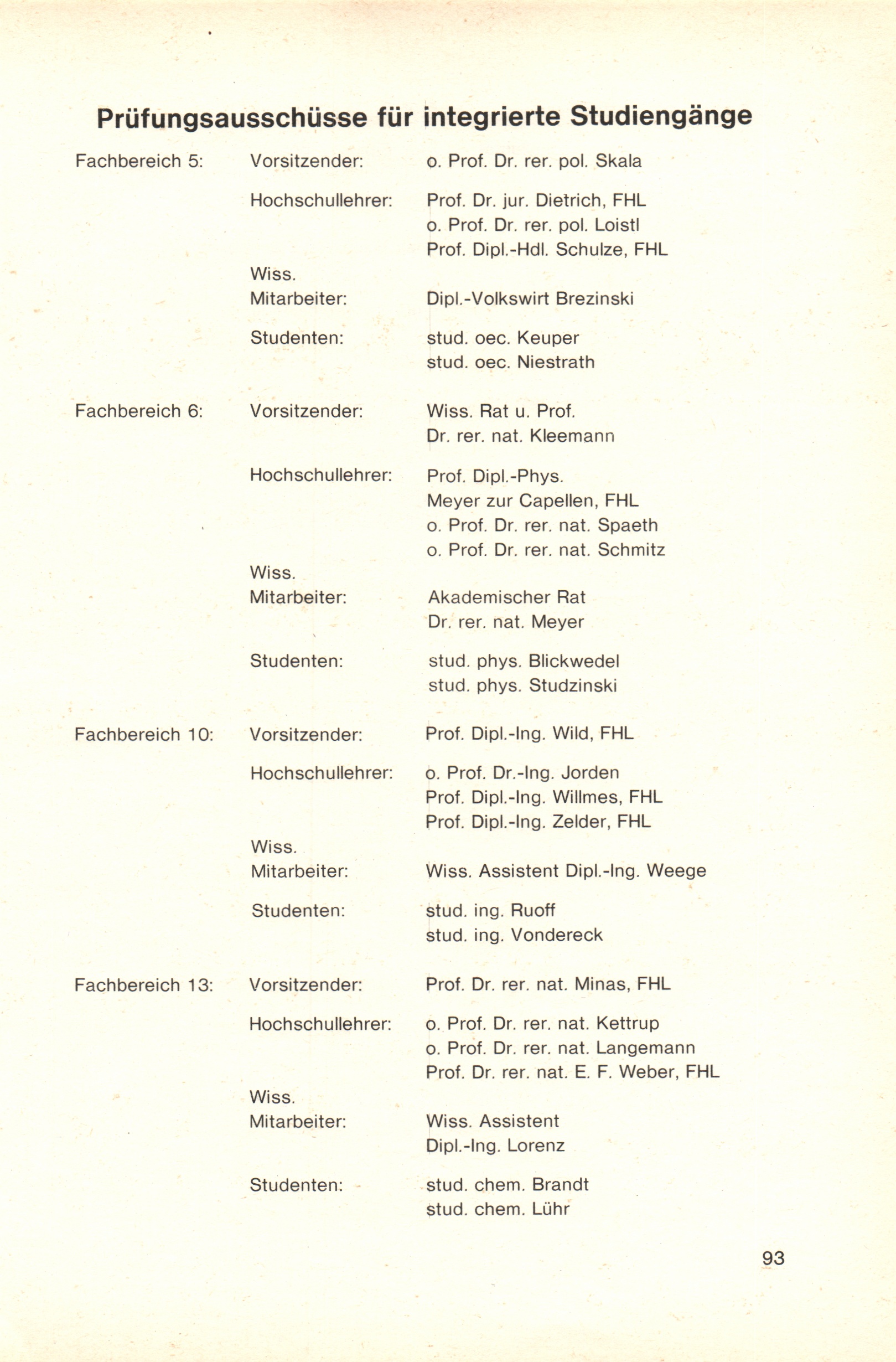 Prüfungsausschüsse für integrierte Studiengänge
