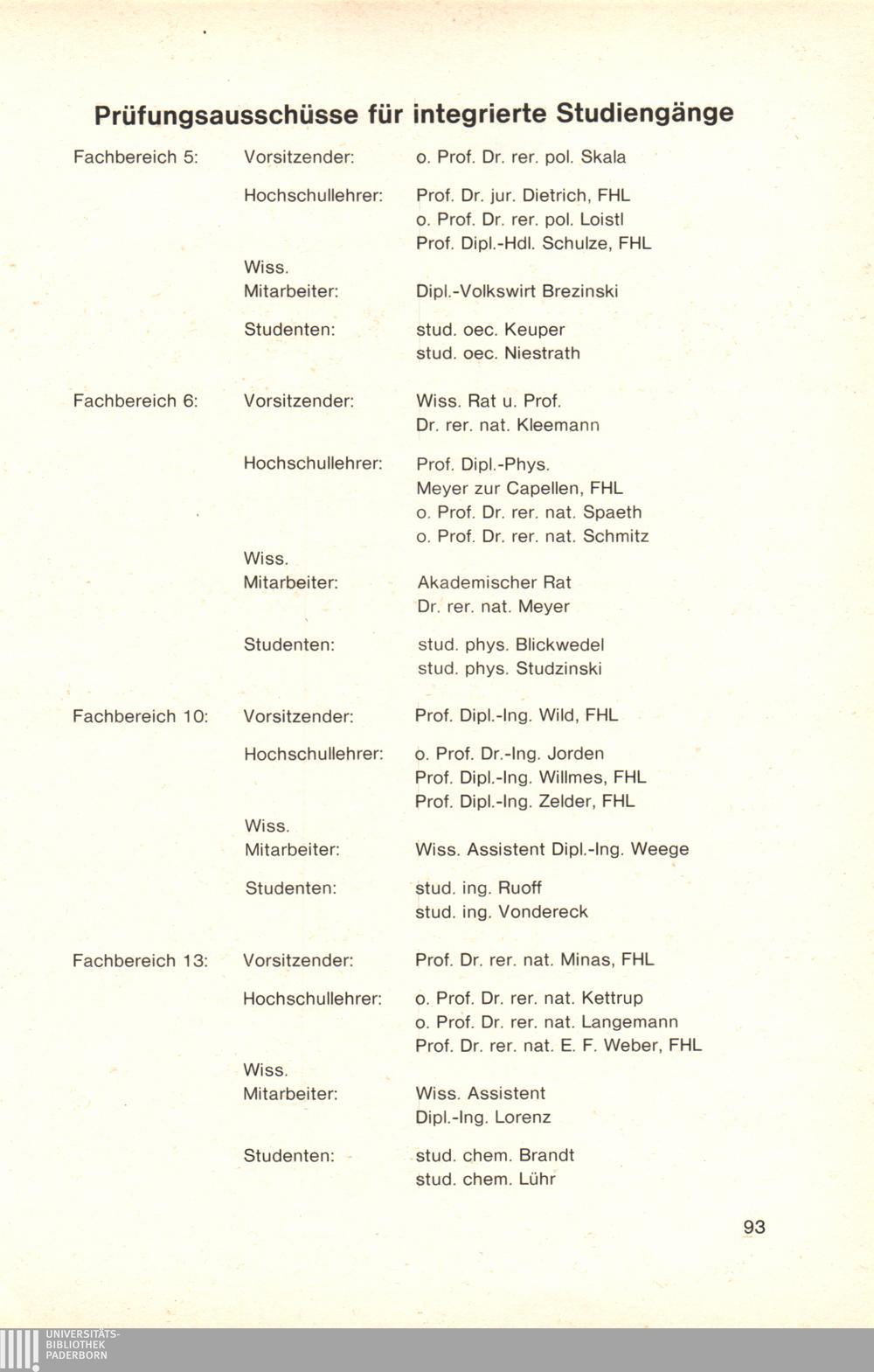 Personal- und Vorlesungsverzeichnis für die Gesamthochschule Paderborn