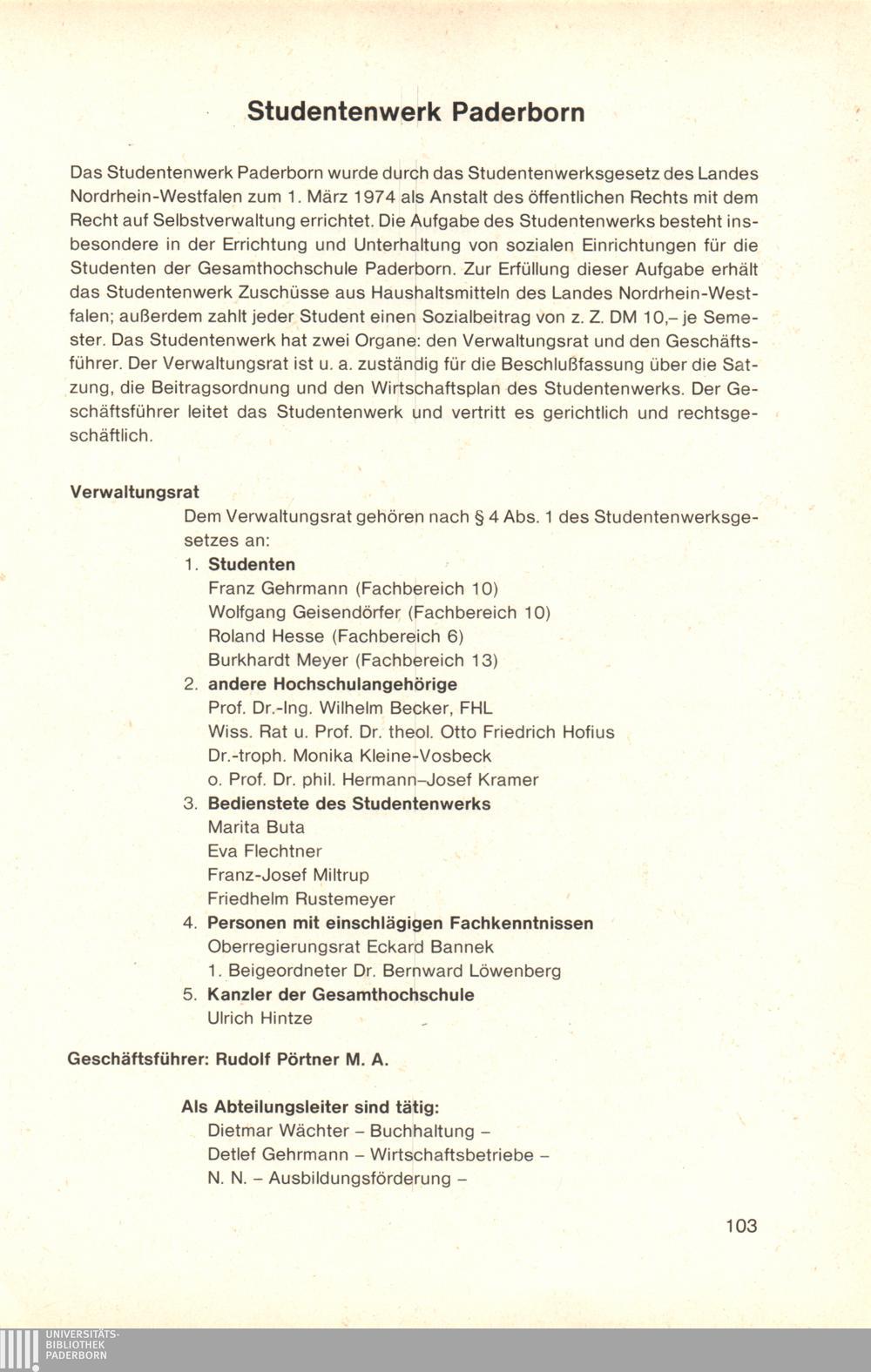 Personal- und Vorlesungsverzeichnis für die Gesamthochschule Paderborn