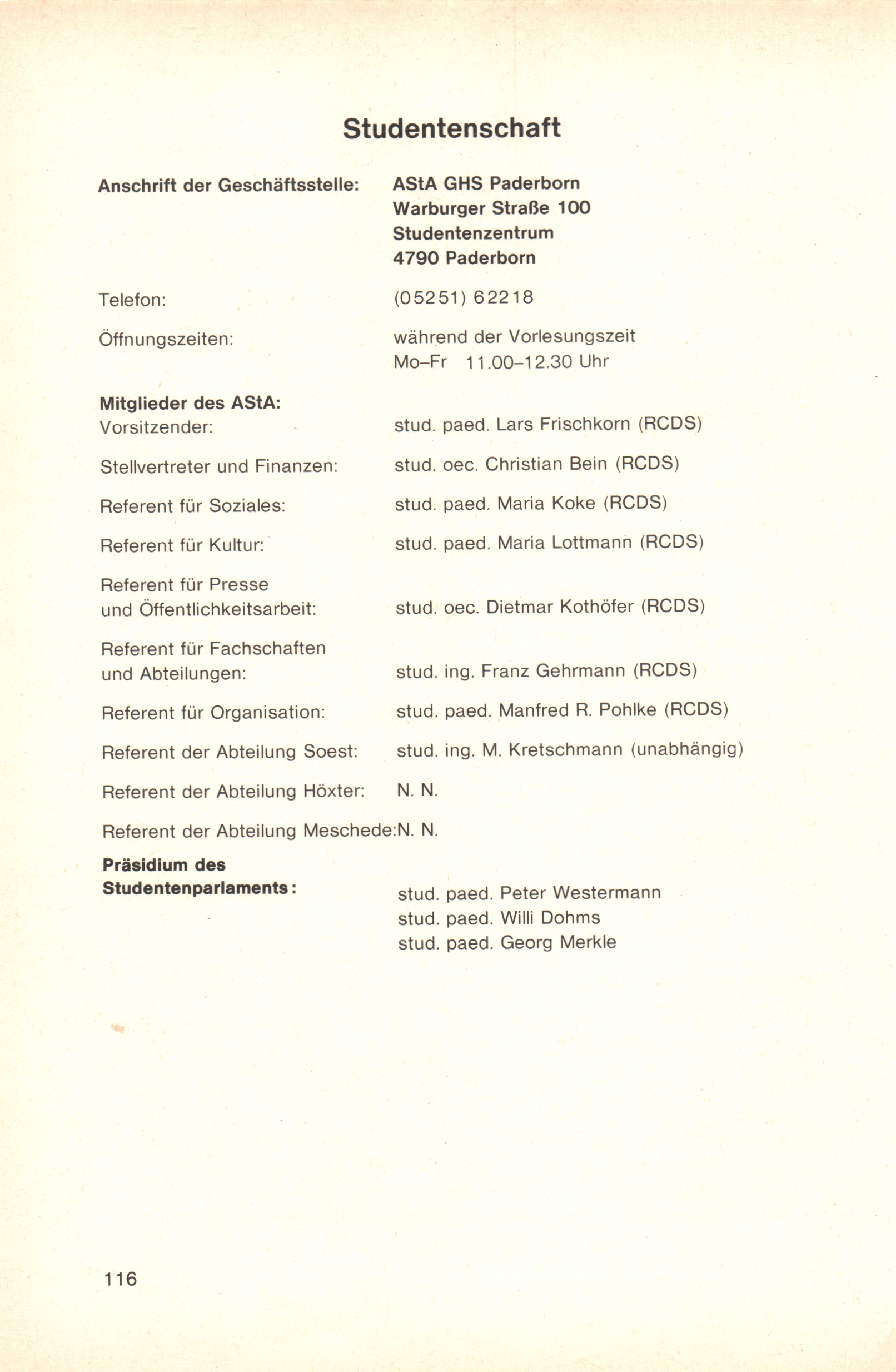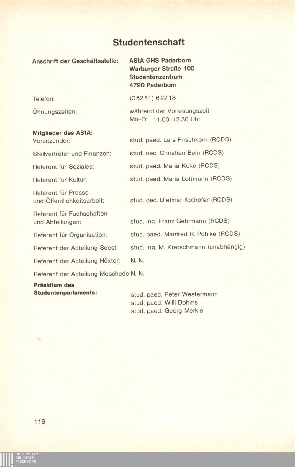 Personal- und Vorlesungsverzeichnis für die Gesamthochschule Paderborn
