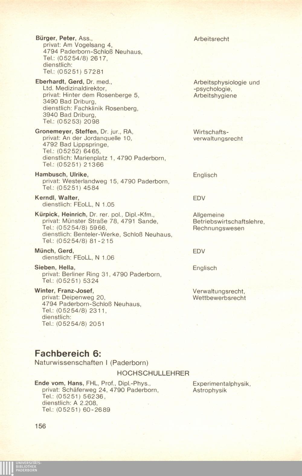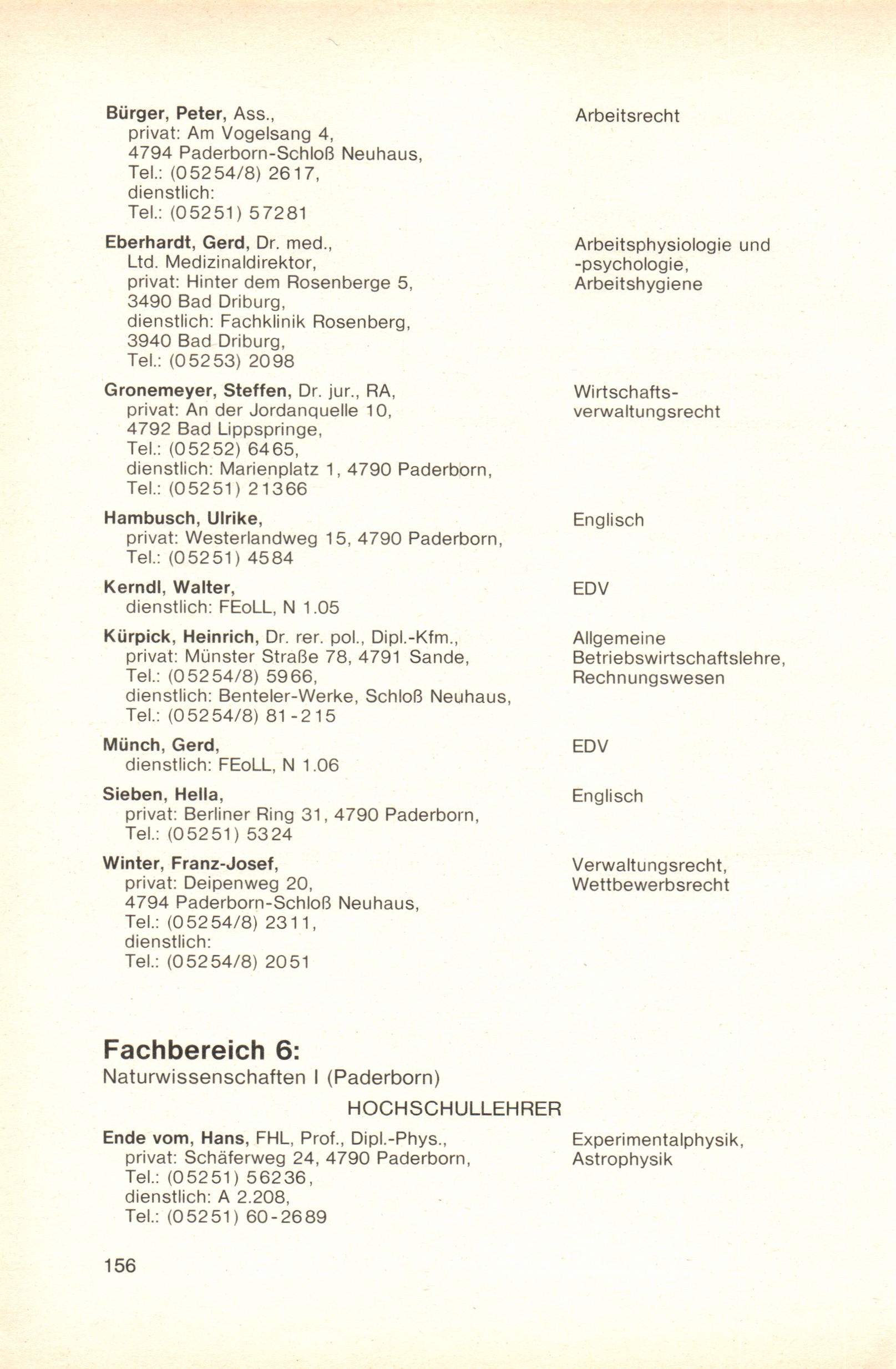 Personal- und Vorlesungsverzeichnis für die Gesamthochschule Paderborn