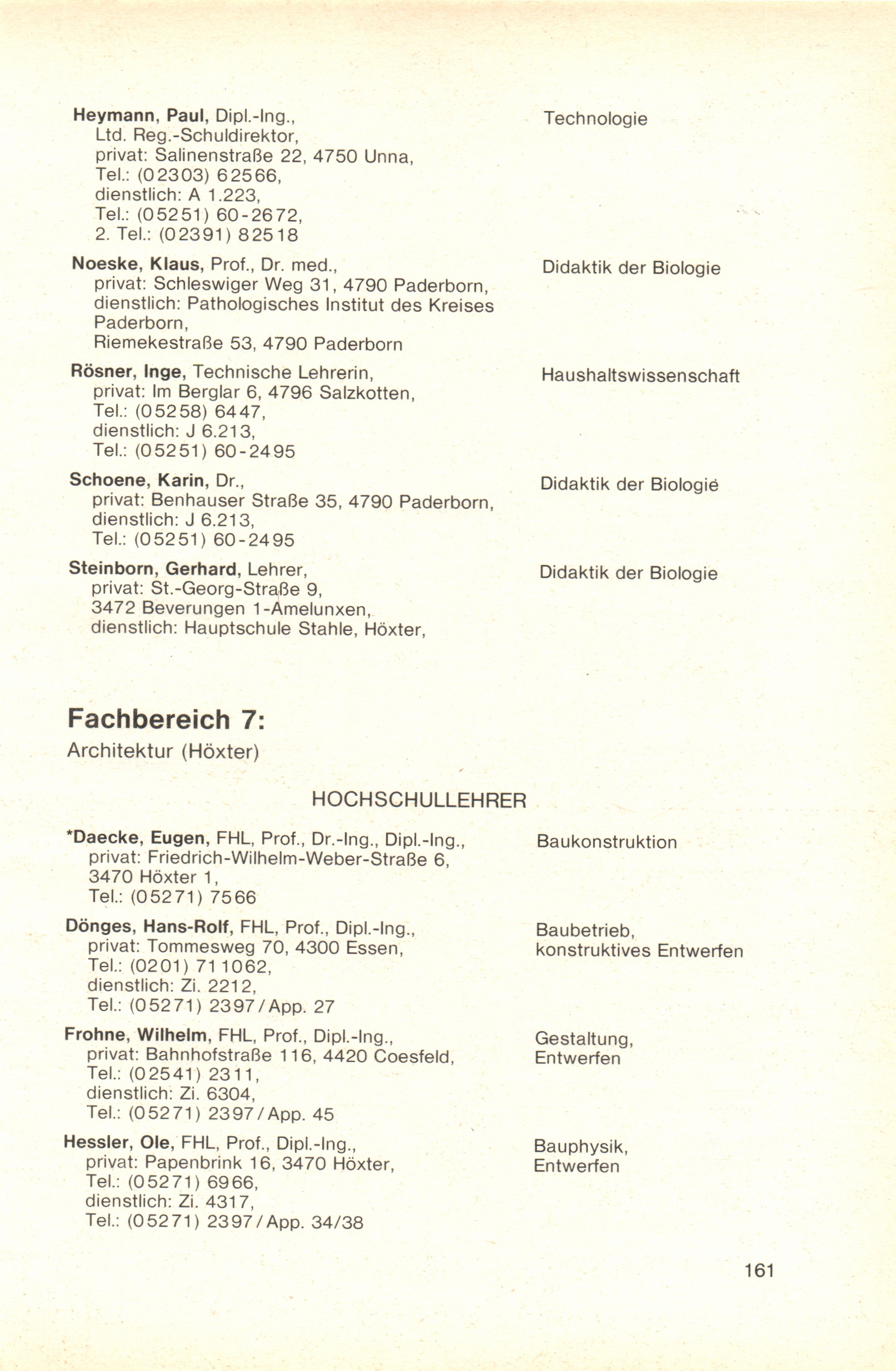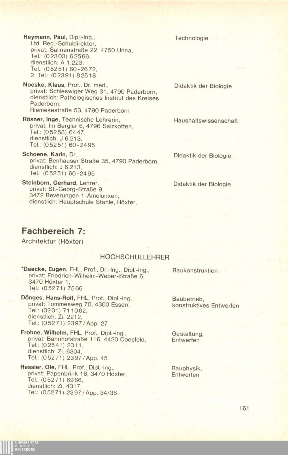 Personal- und Vorlesungsverzeichnis für die Gesamthochschule Paderborn