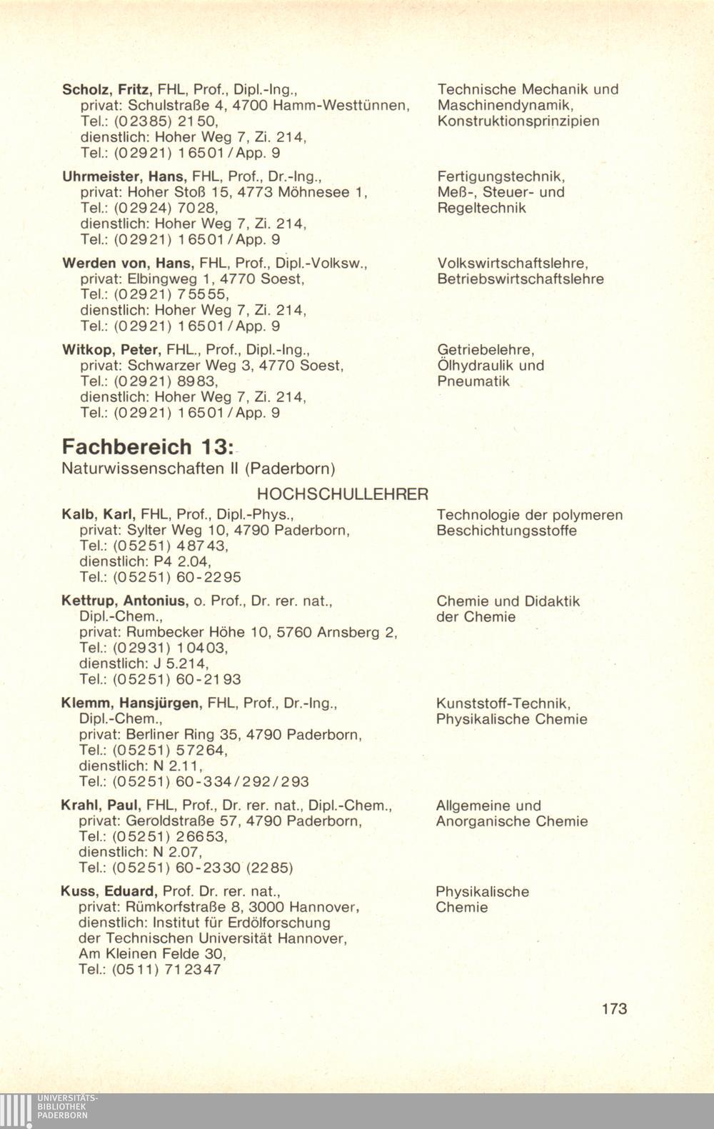 Personal- und Vorlesungsverzeichnis für die Gesamthochschule Paderborn