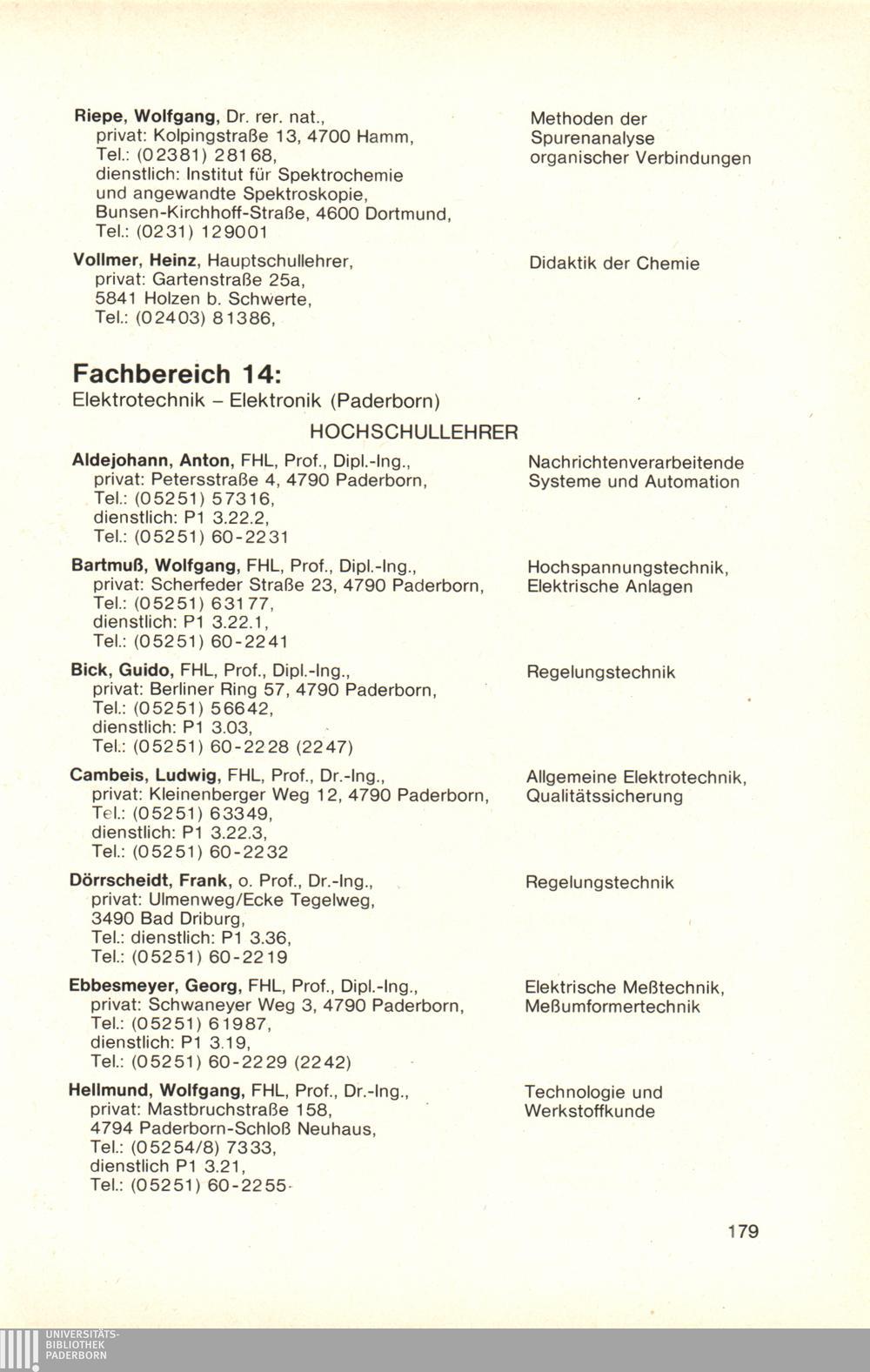 Fachbereich 14: Elektrotechnik - Elektronik (Paderborn)