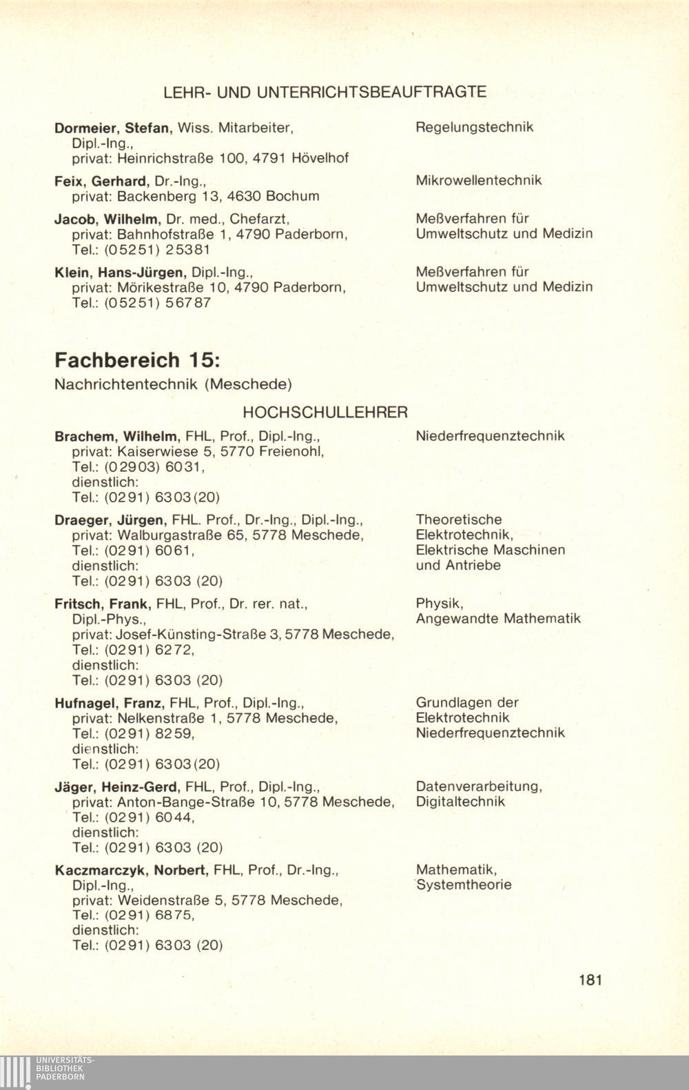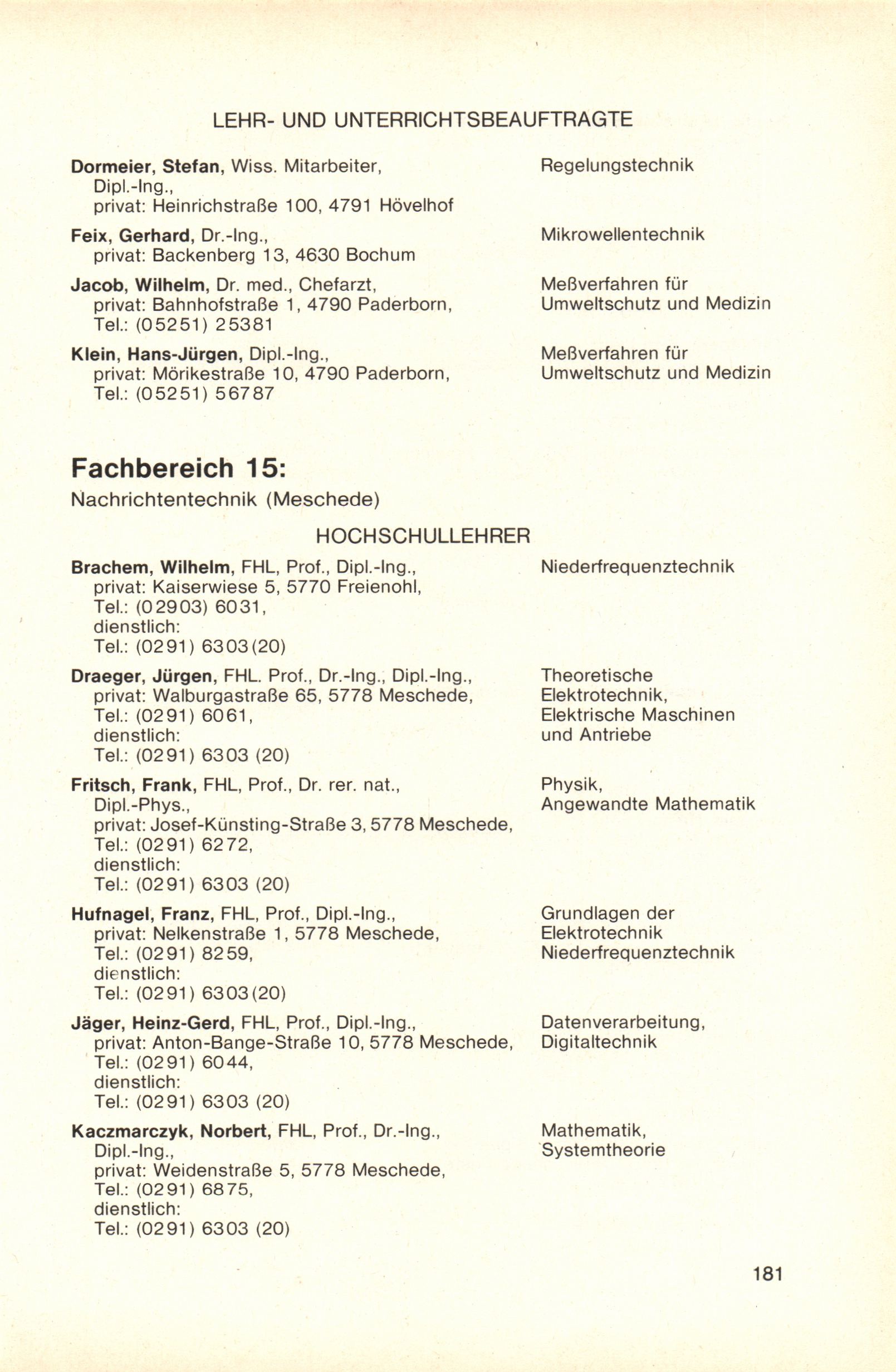 Personal- und Vorlesungsverzeichnis für die Gesamthochschule Paderborn