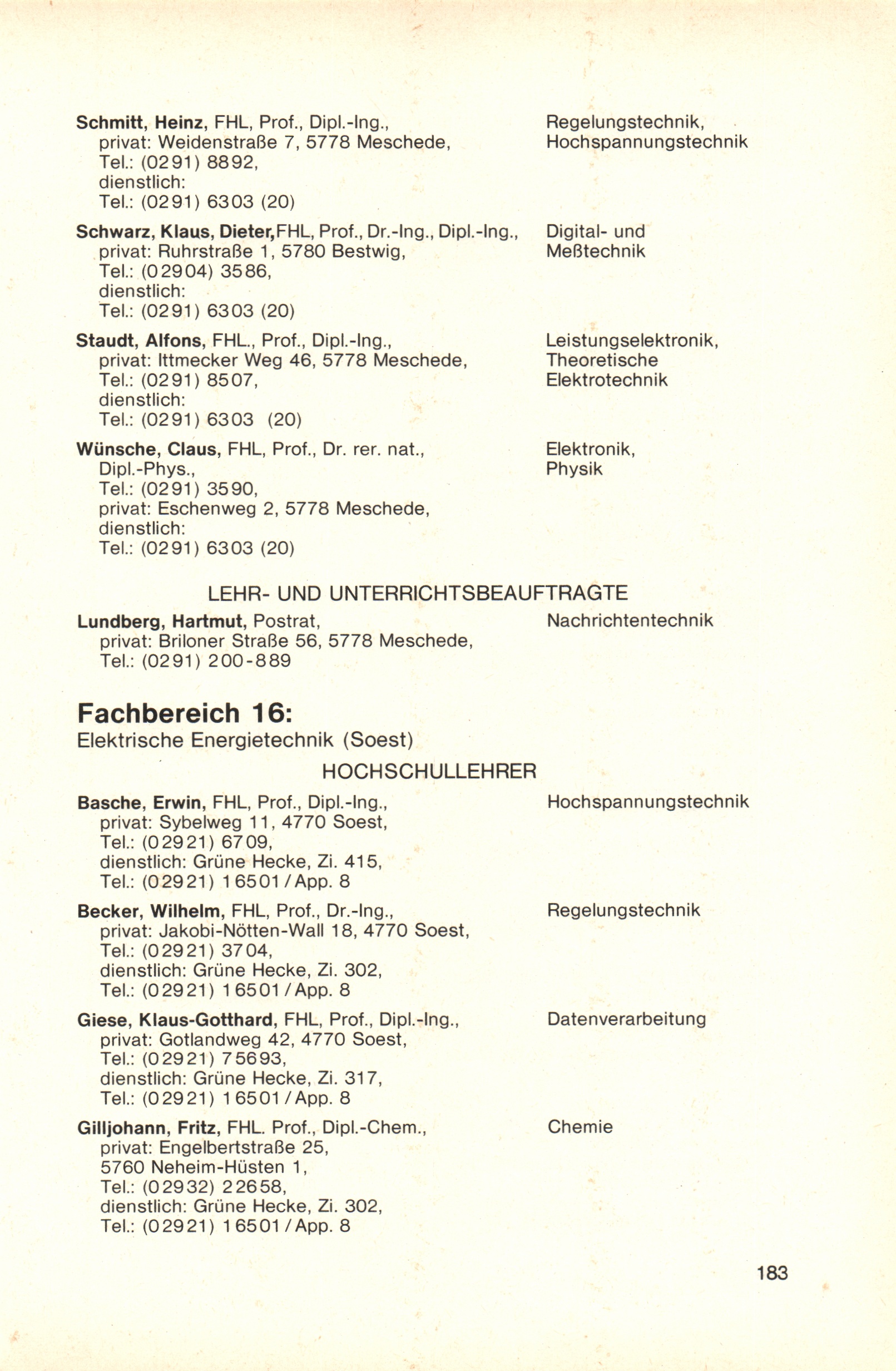 Personal- und Vorlesungsverzeichnis für die Gesamthochschule Paderborn
