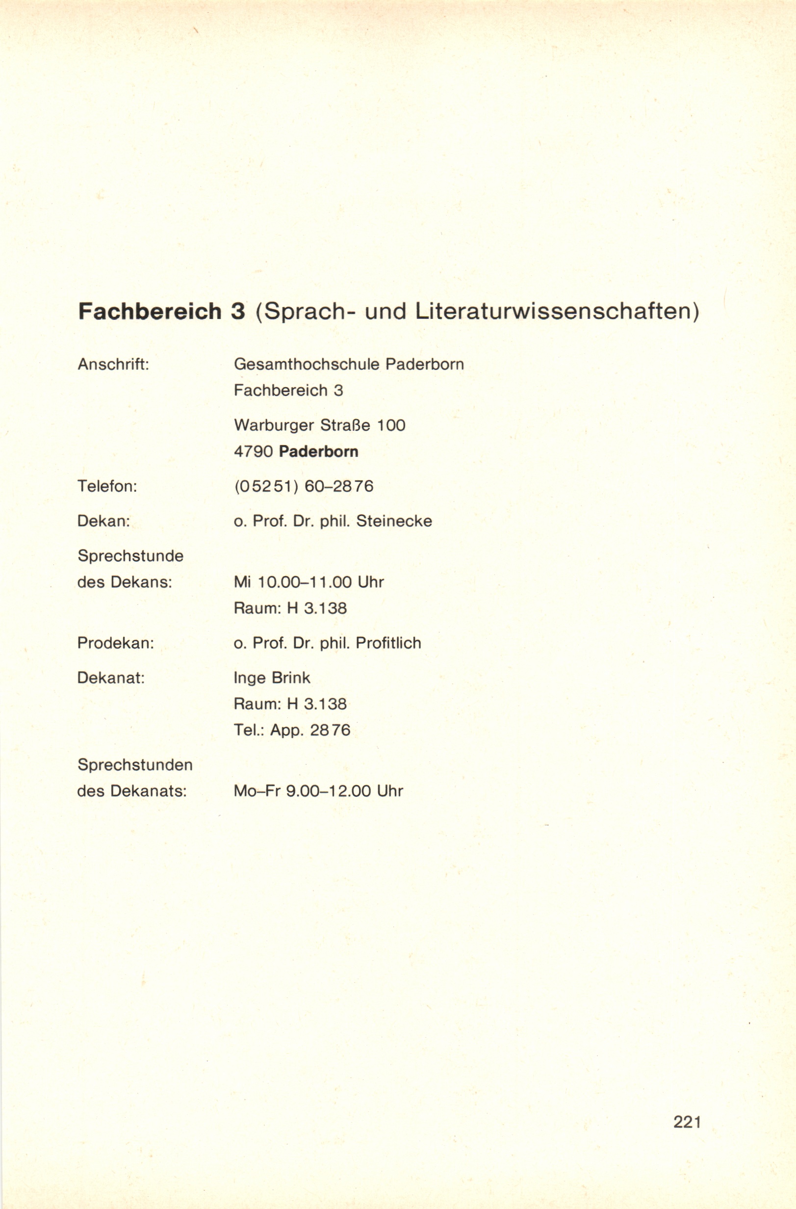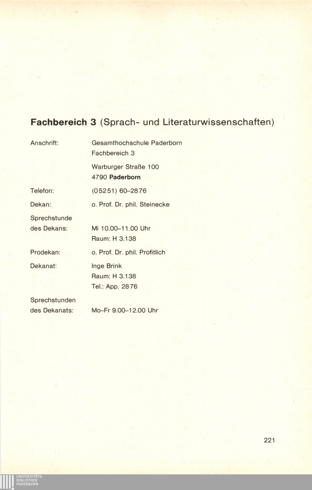 Personal- und Vorlesungsverzeichnis für die Gesamthochschule Paderborn