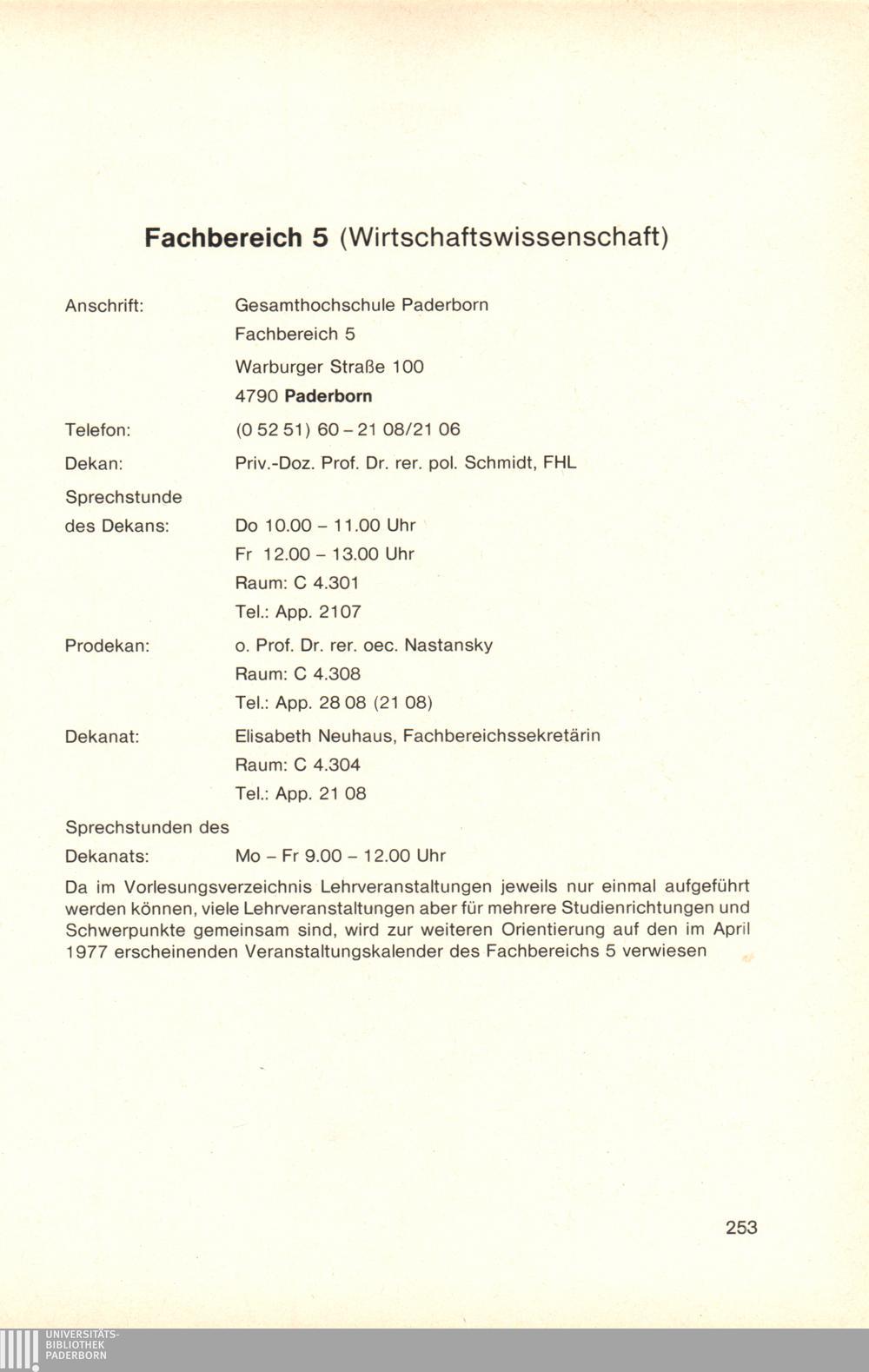 Personal- und Vorlesungsverzeichnis für die Gesamthochschule Paderborn