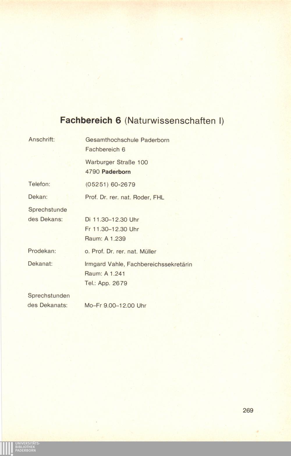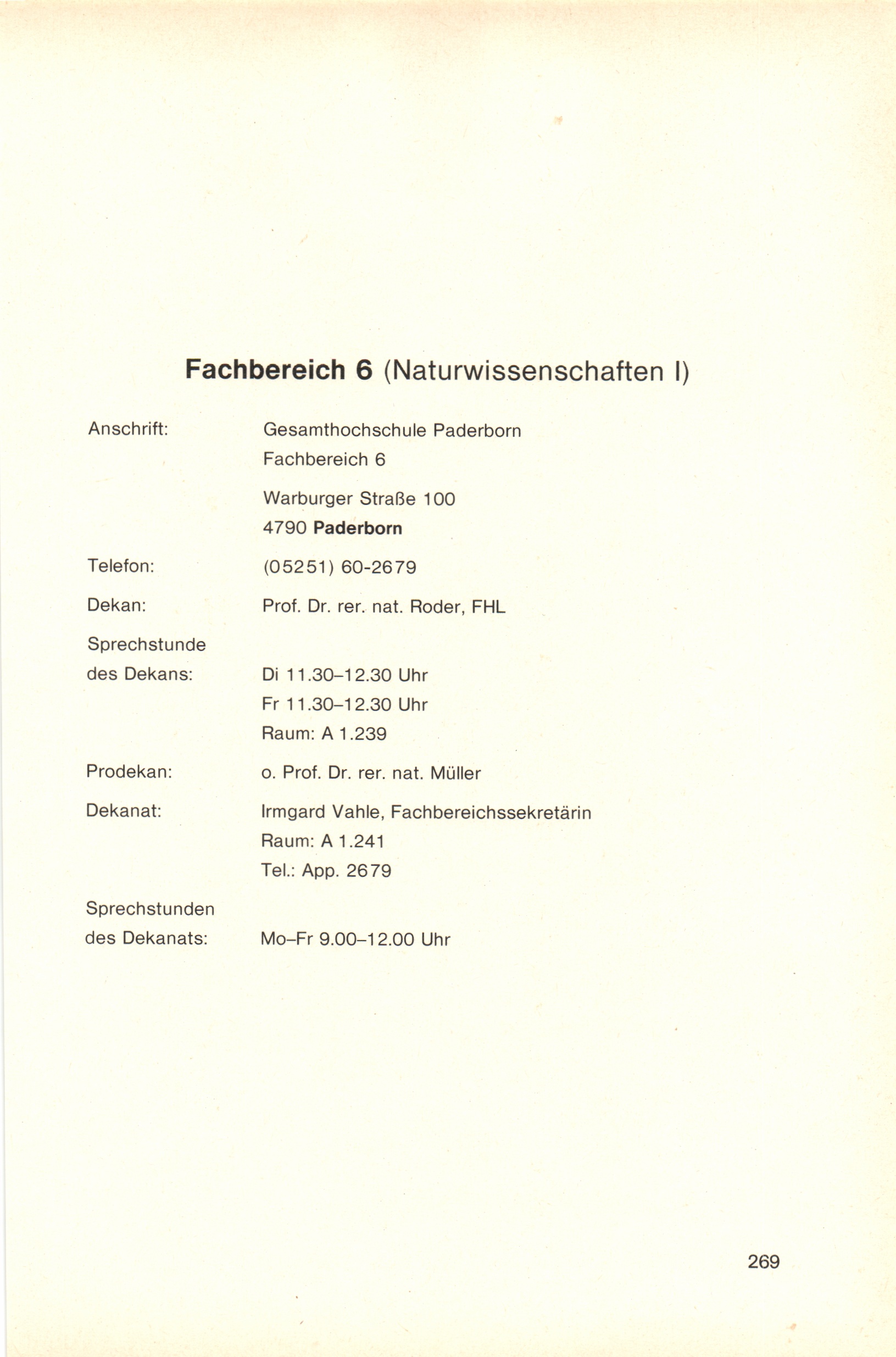 Personal- und Vorlesungsverzeichnis für die Gesamthochschule Paderborn