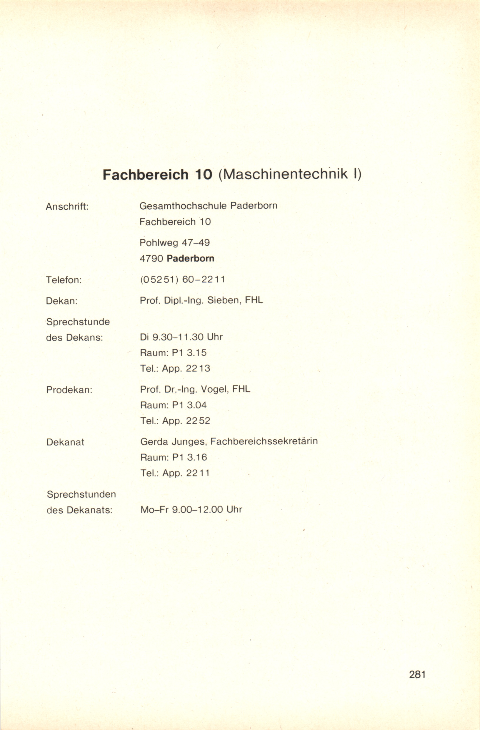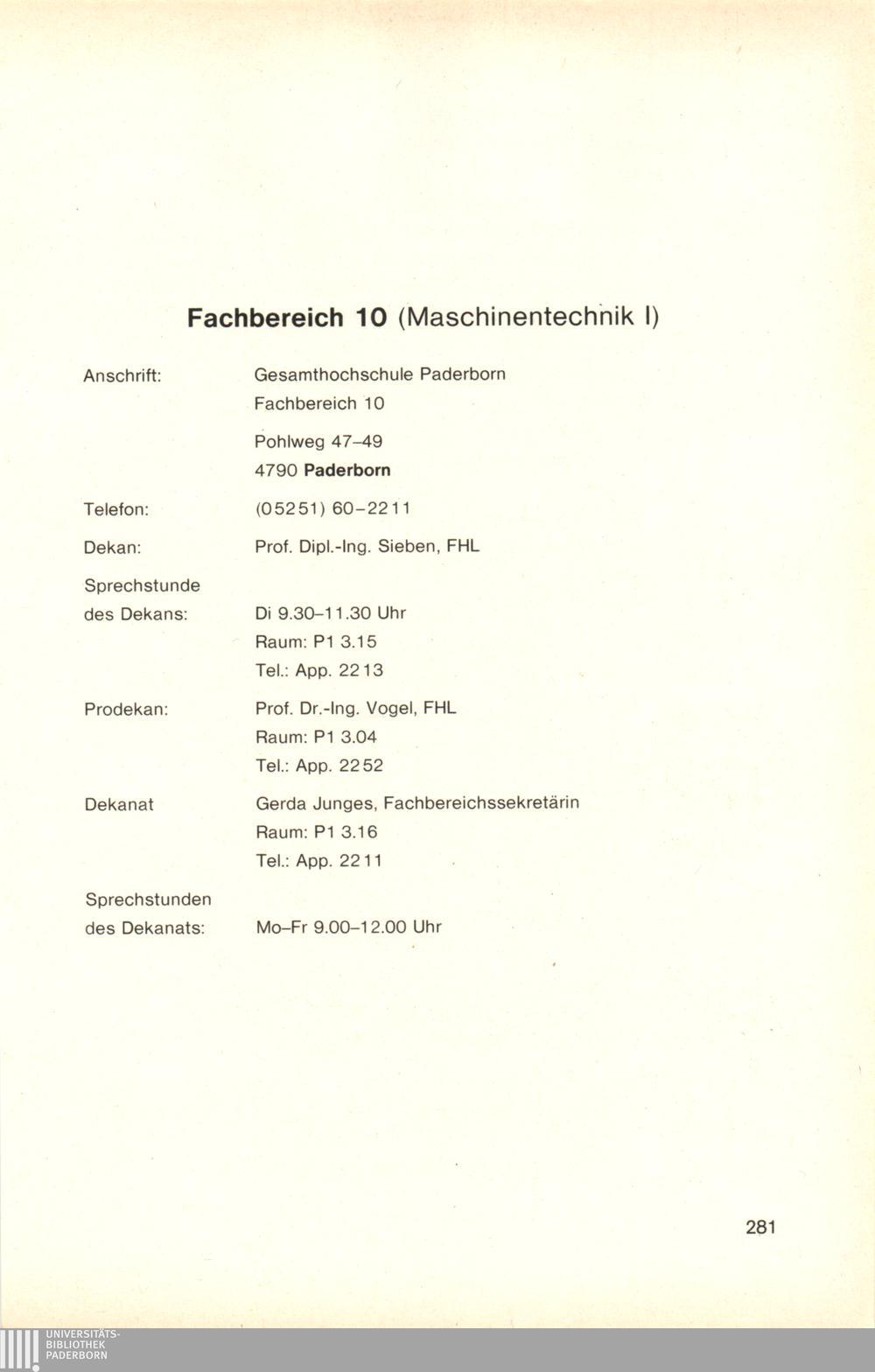 Personal- und Vorlesungsverzeichnis für die Gesamthochschule Paderborn