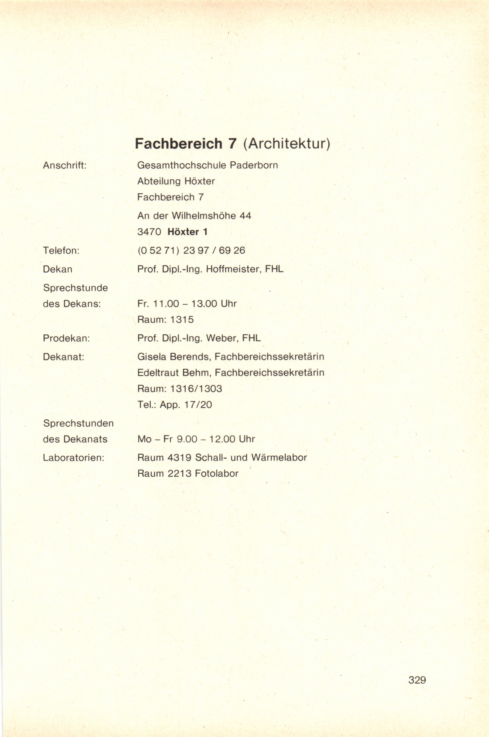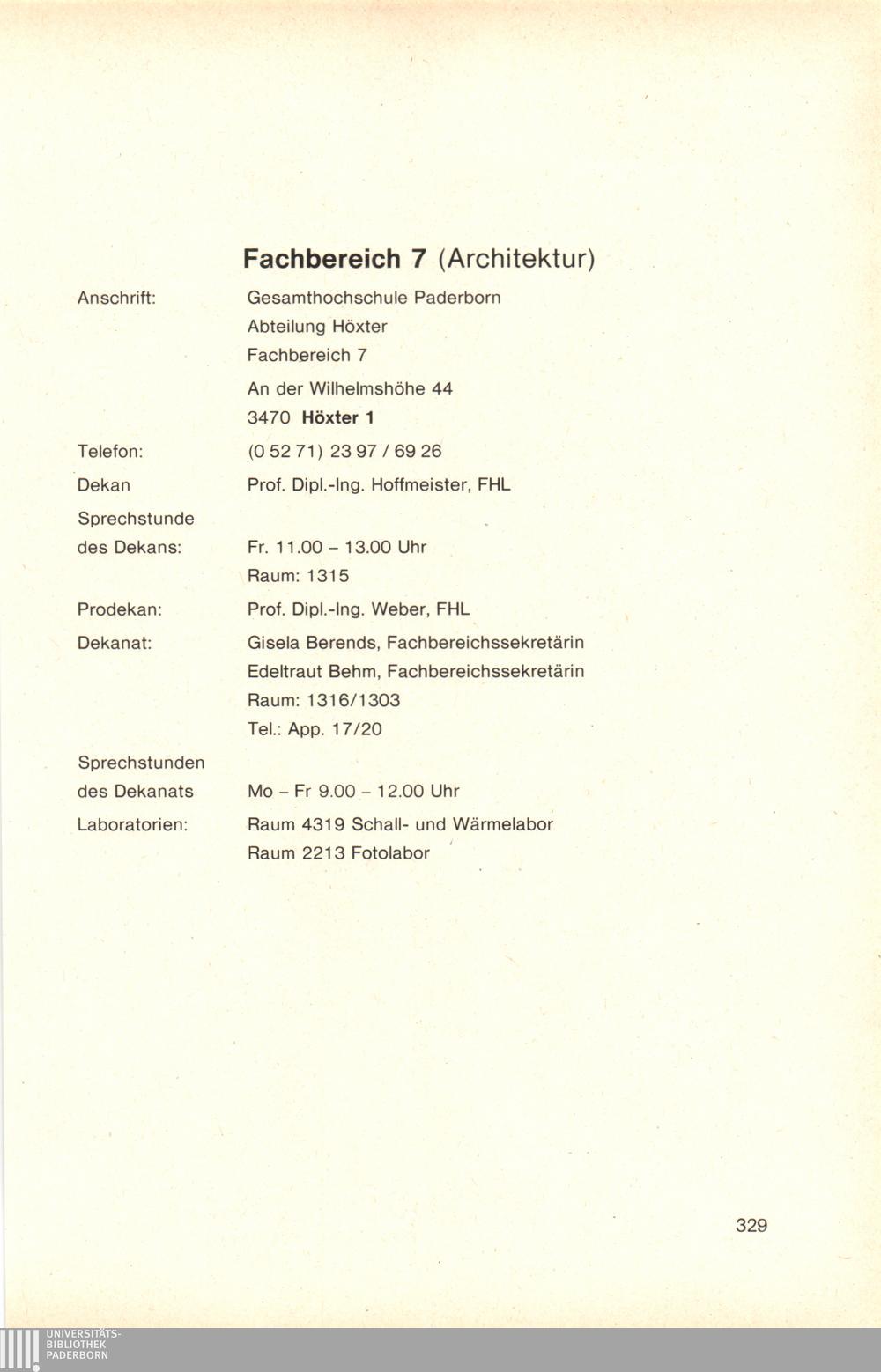 Personal- und Vorlesungsverzeichnis für die Gesamthochschule Paderborn