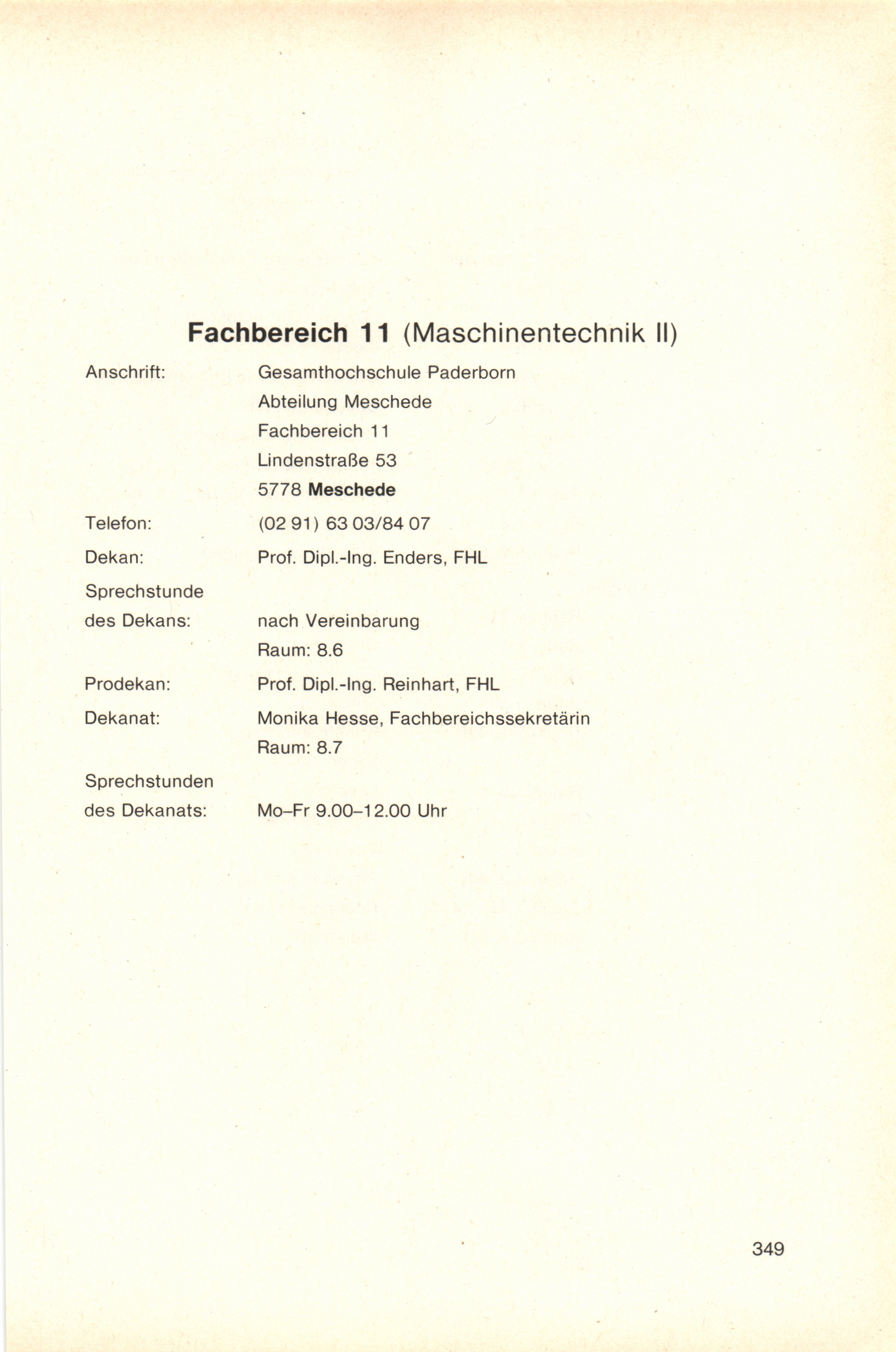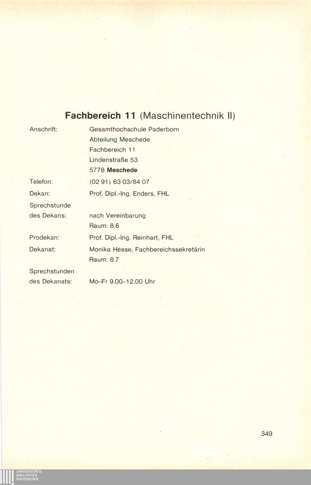 Personal- und Vorlesungsverzeichnis für die Gesamthochschule Paderborn
