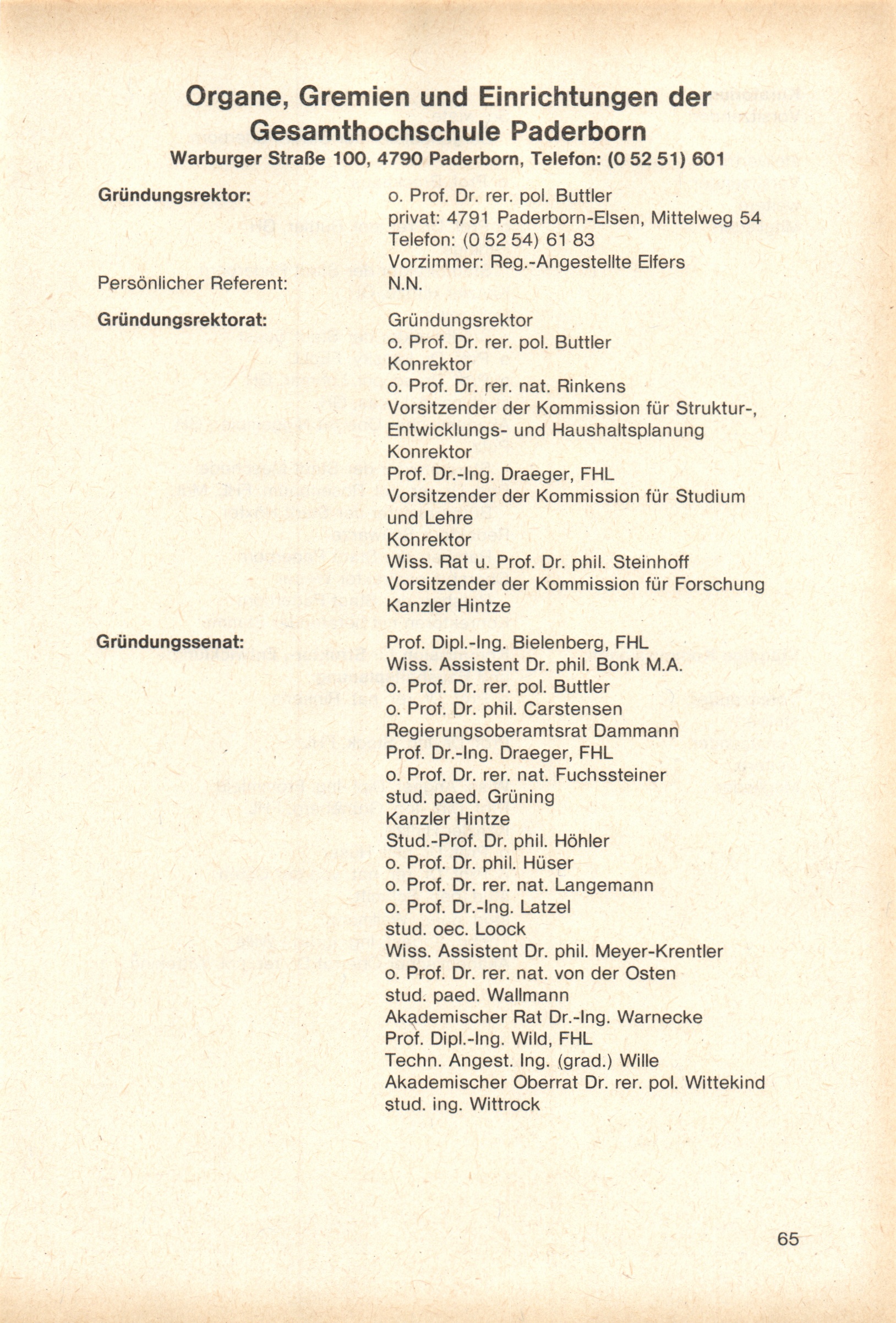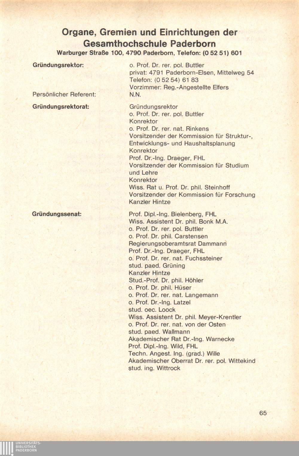 Personal- und Vorlesungsverzeichnis für die Gesamthochschule Paderborn