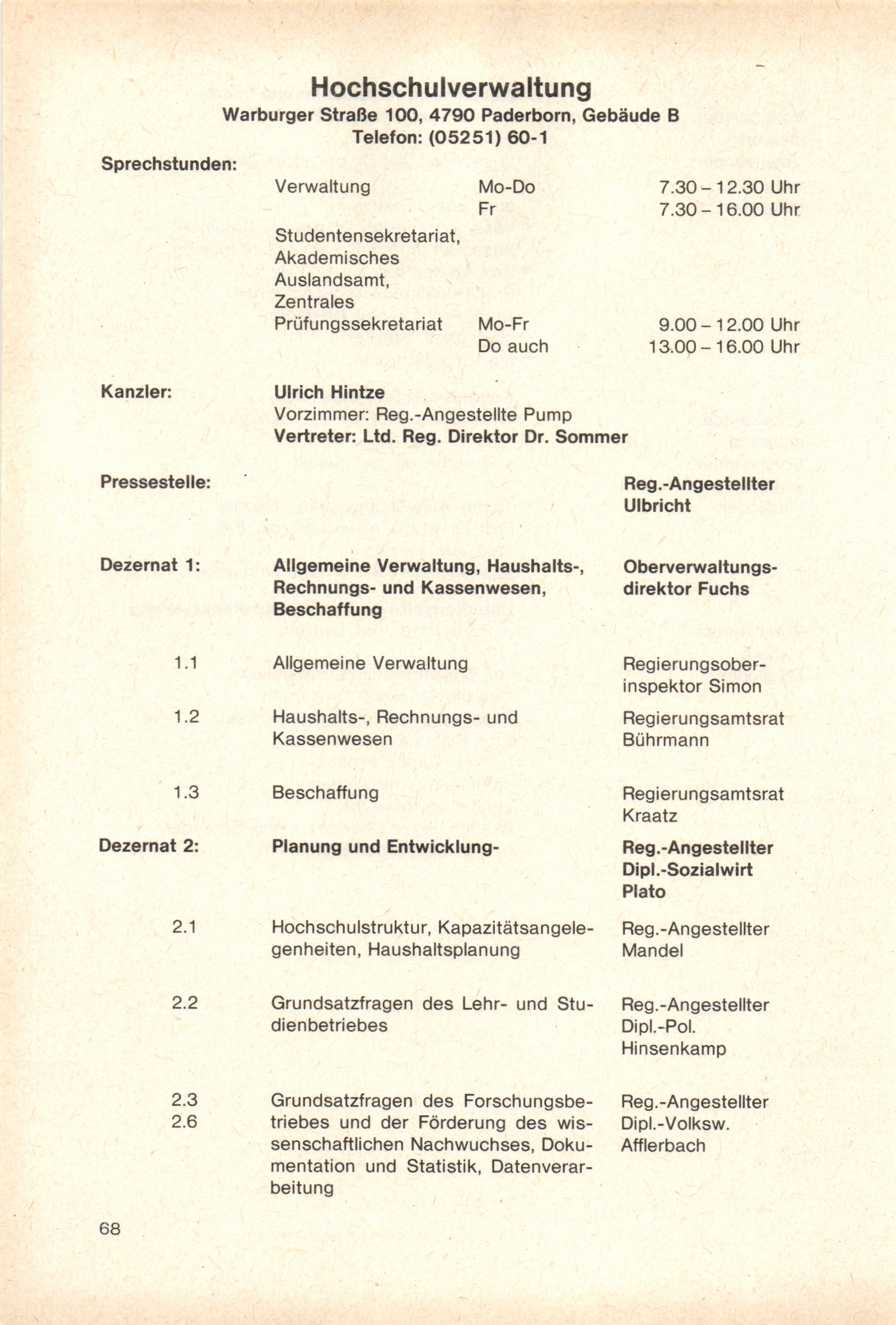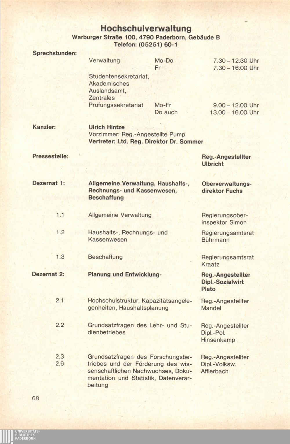 Personal- und Vorlesungsverzeichnis für die Gesamthochschule Paderborn