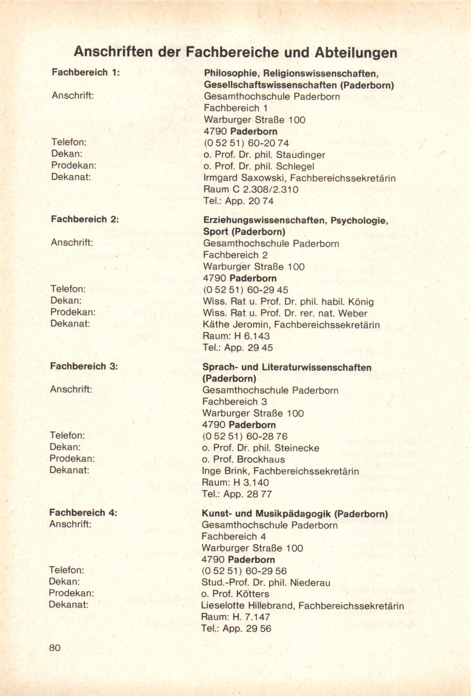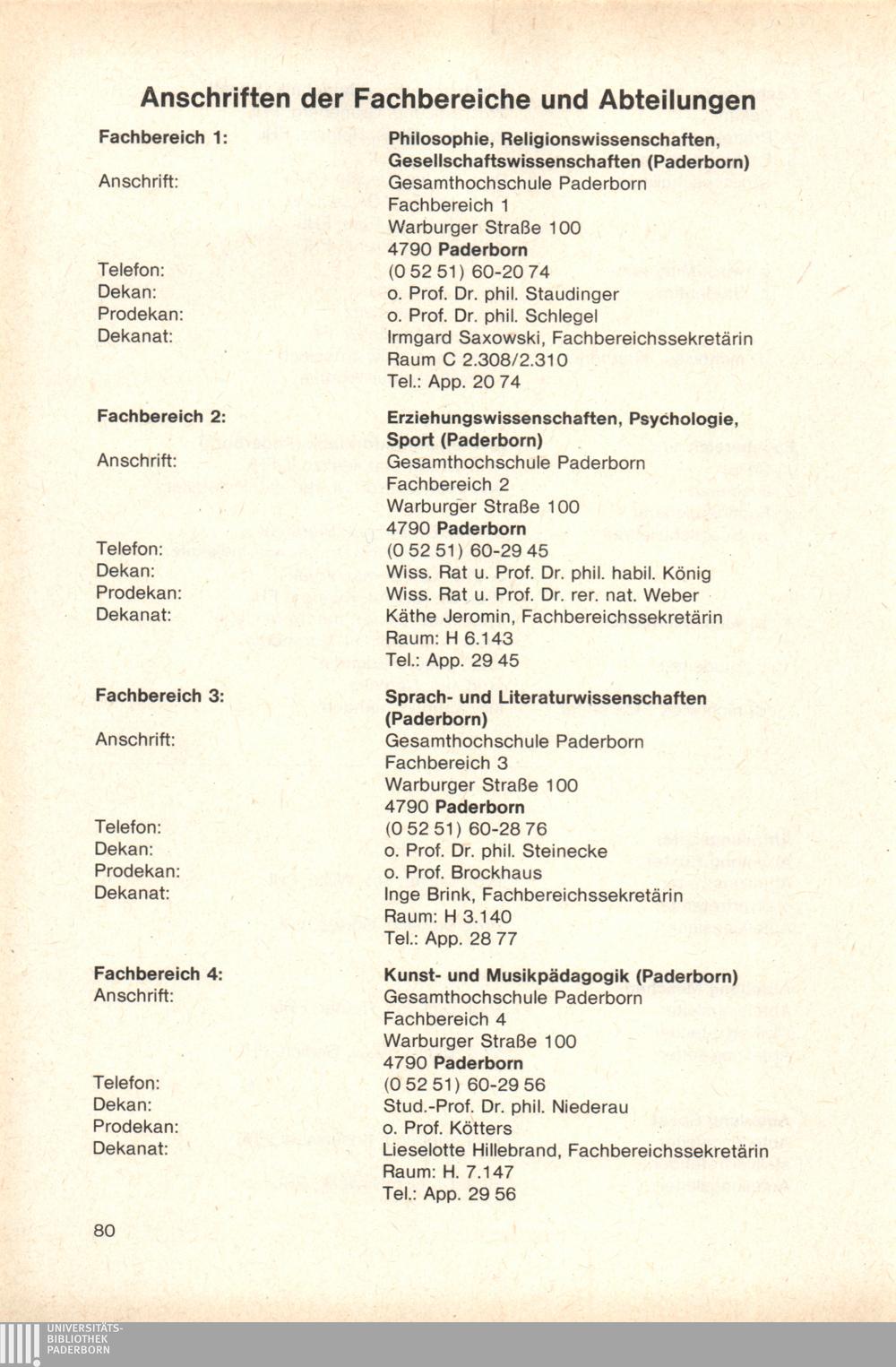 Personal- und Vorlesungsverzeichnis für die Gesamthochschule Paderborn