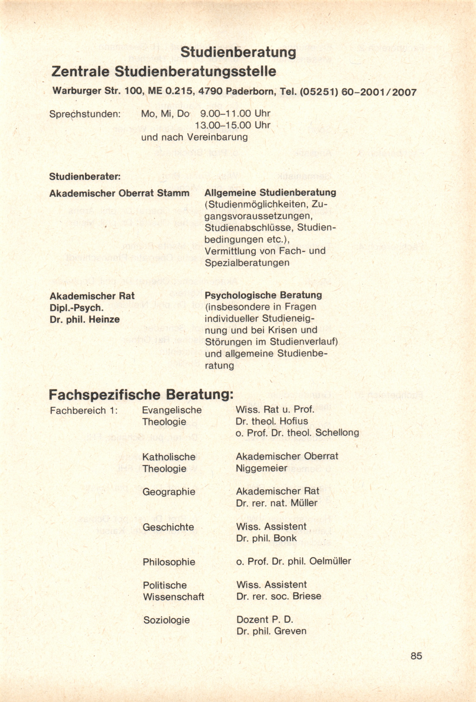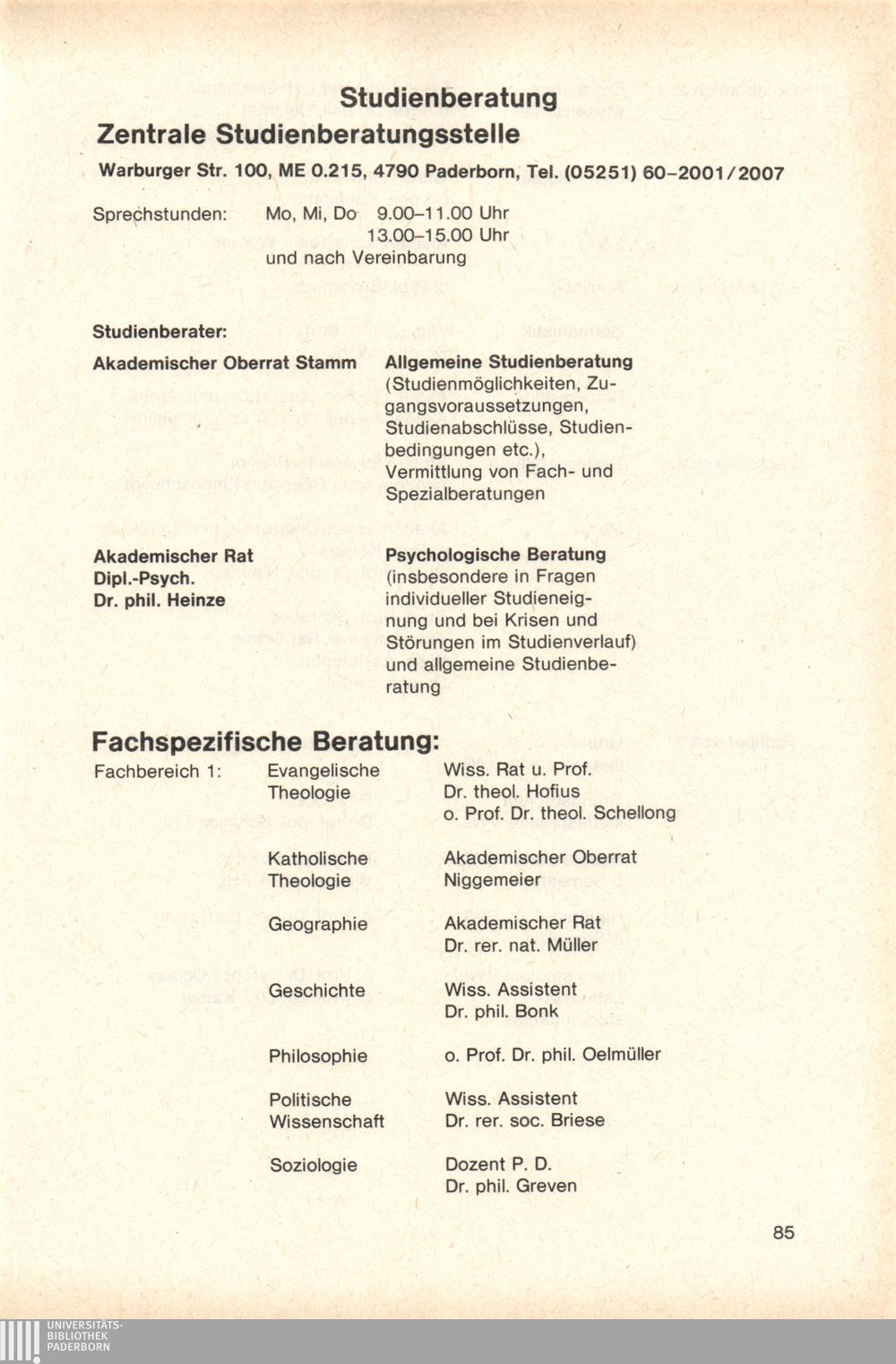 Personal- und Vorlesungsverzeichnis für die Gesamthochschule Paderborn