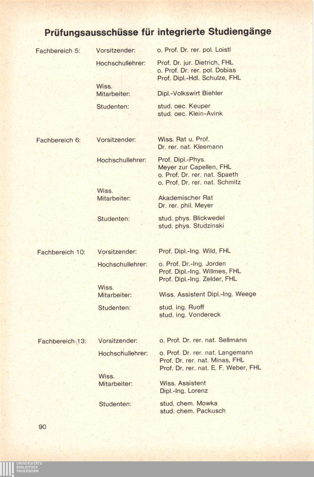 Personal- und Vorlesungsverzeichnis für die Gesamthochschule Paderborn