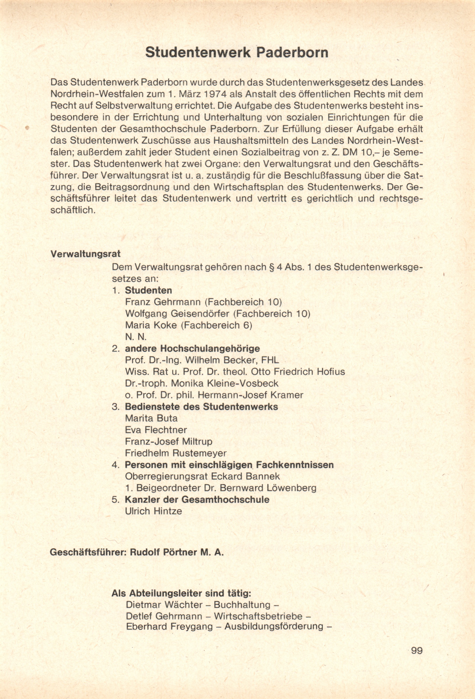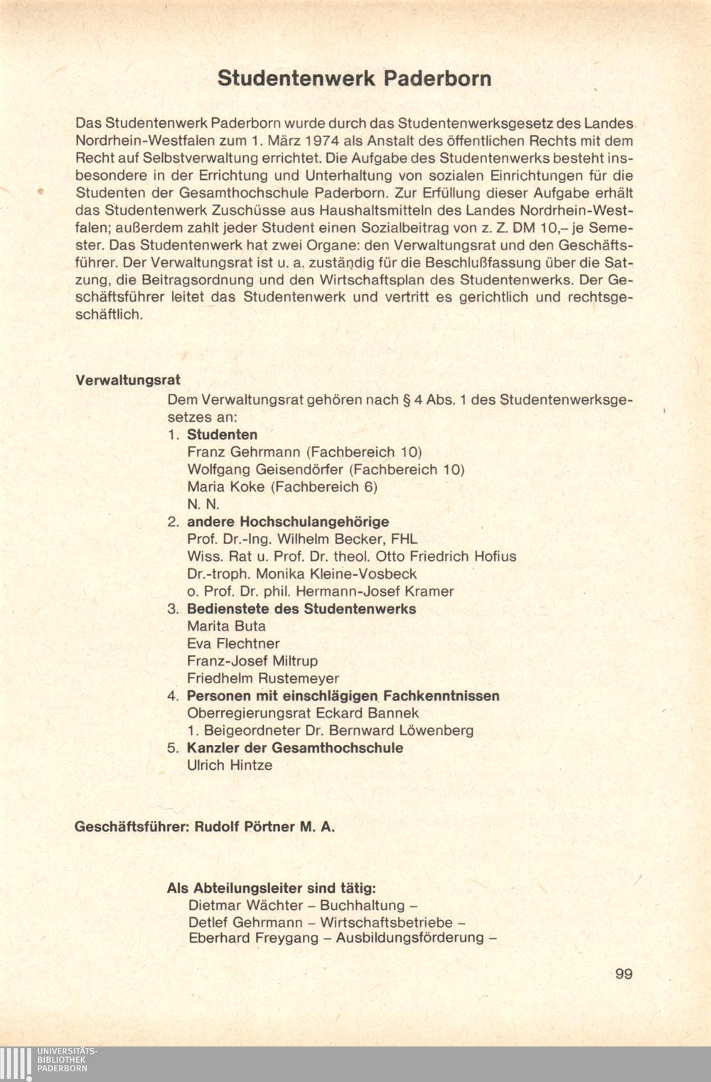 Personal- und Vorlesungsverzeichnis für die Gesamthochschule Paderborn