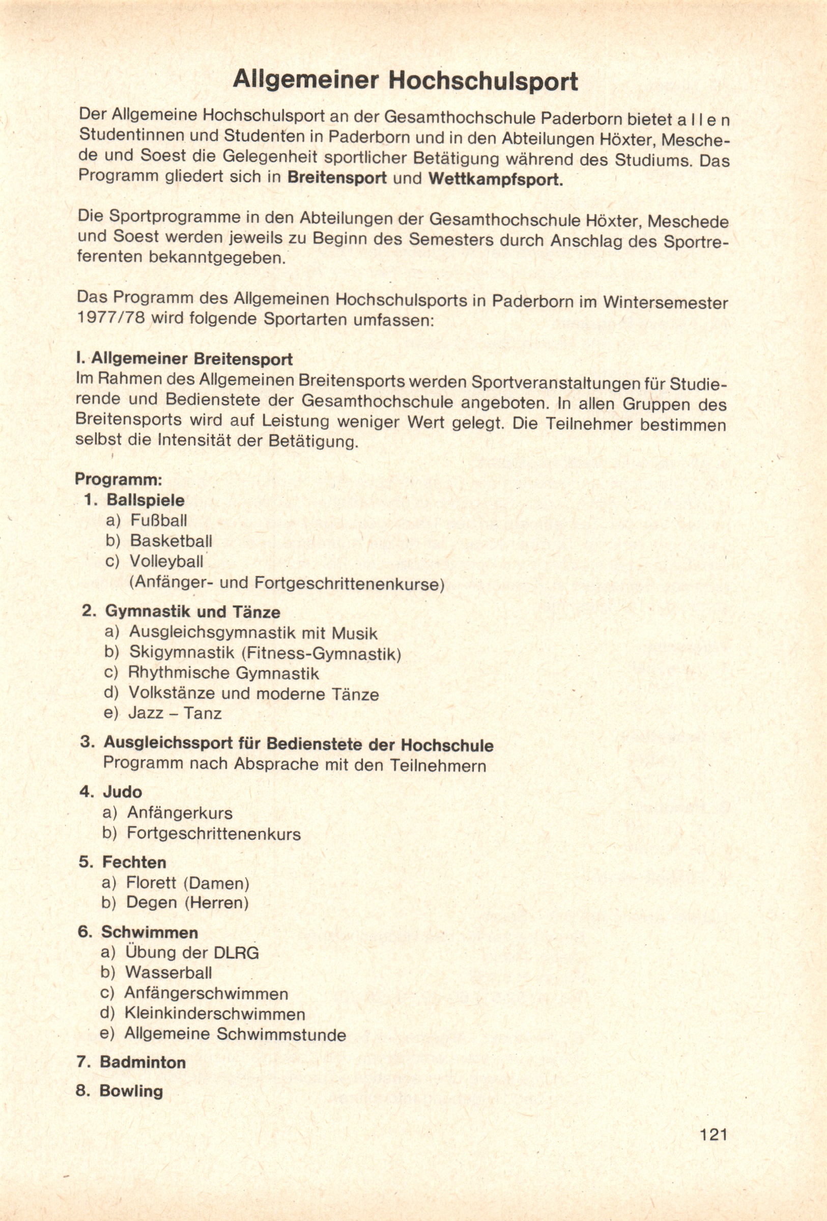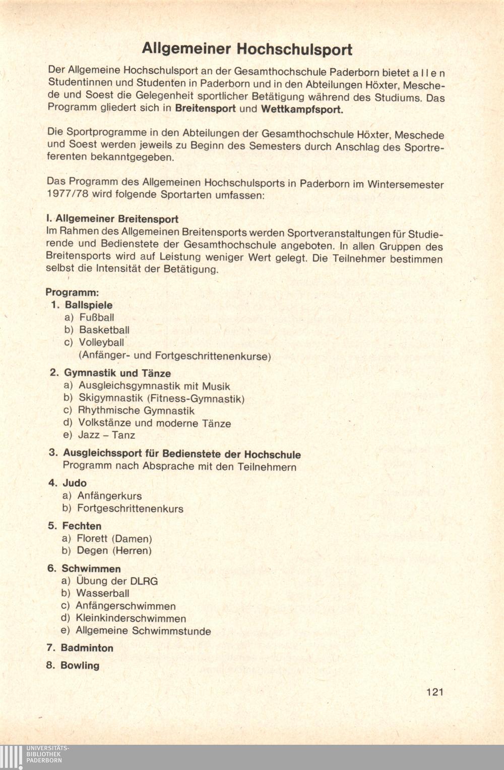 Allgemeiner Hochschulsport