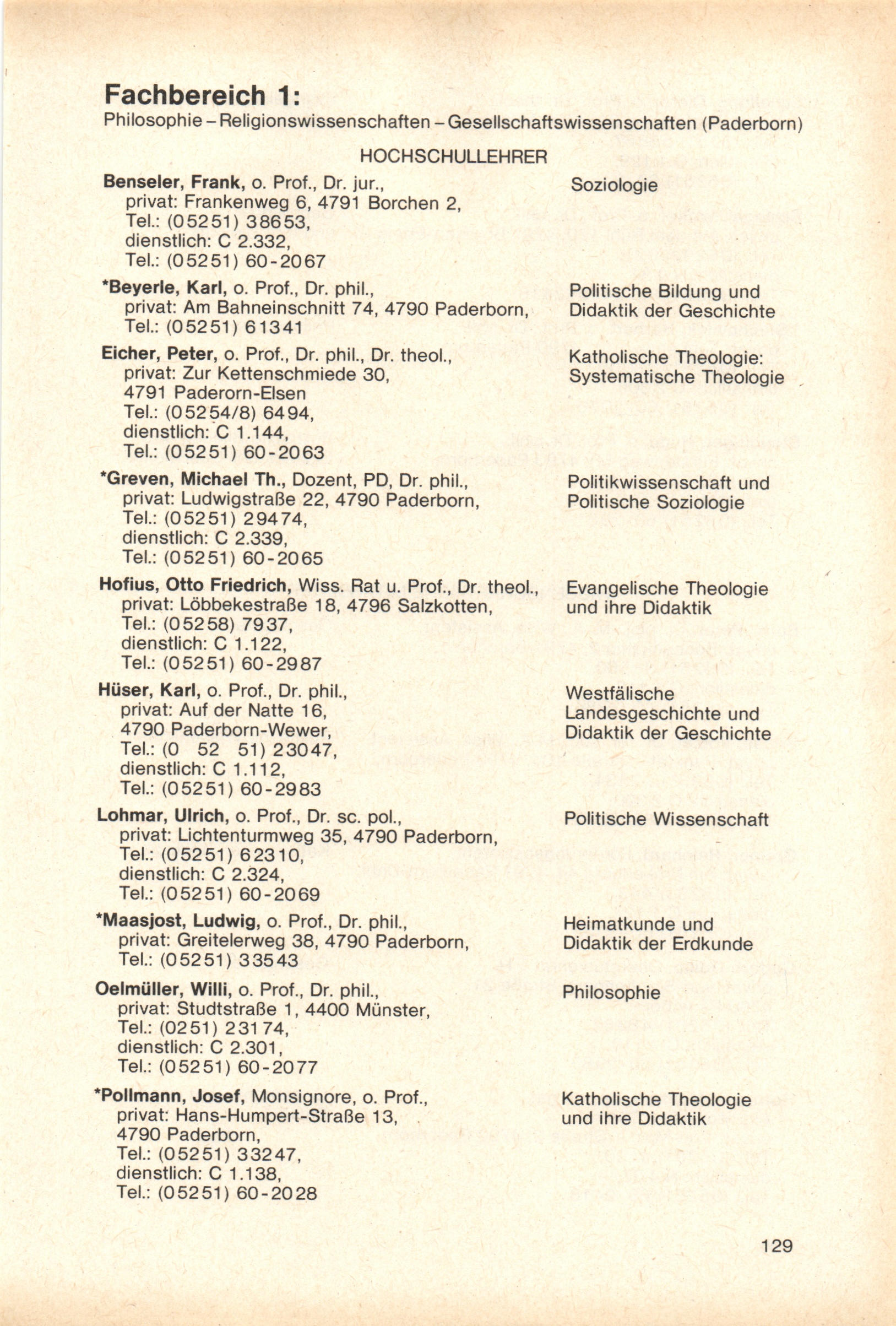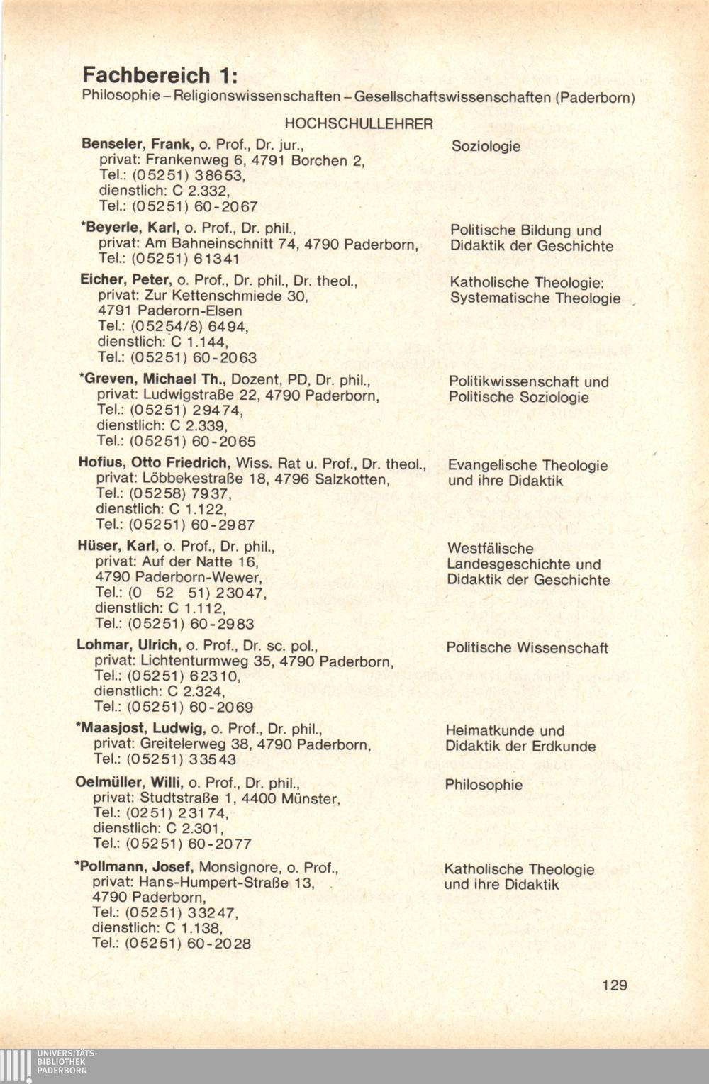 Personal- und Vorlesungsverzeichnis für die Gesamthochschule Paderborn
