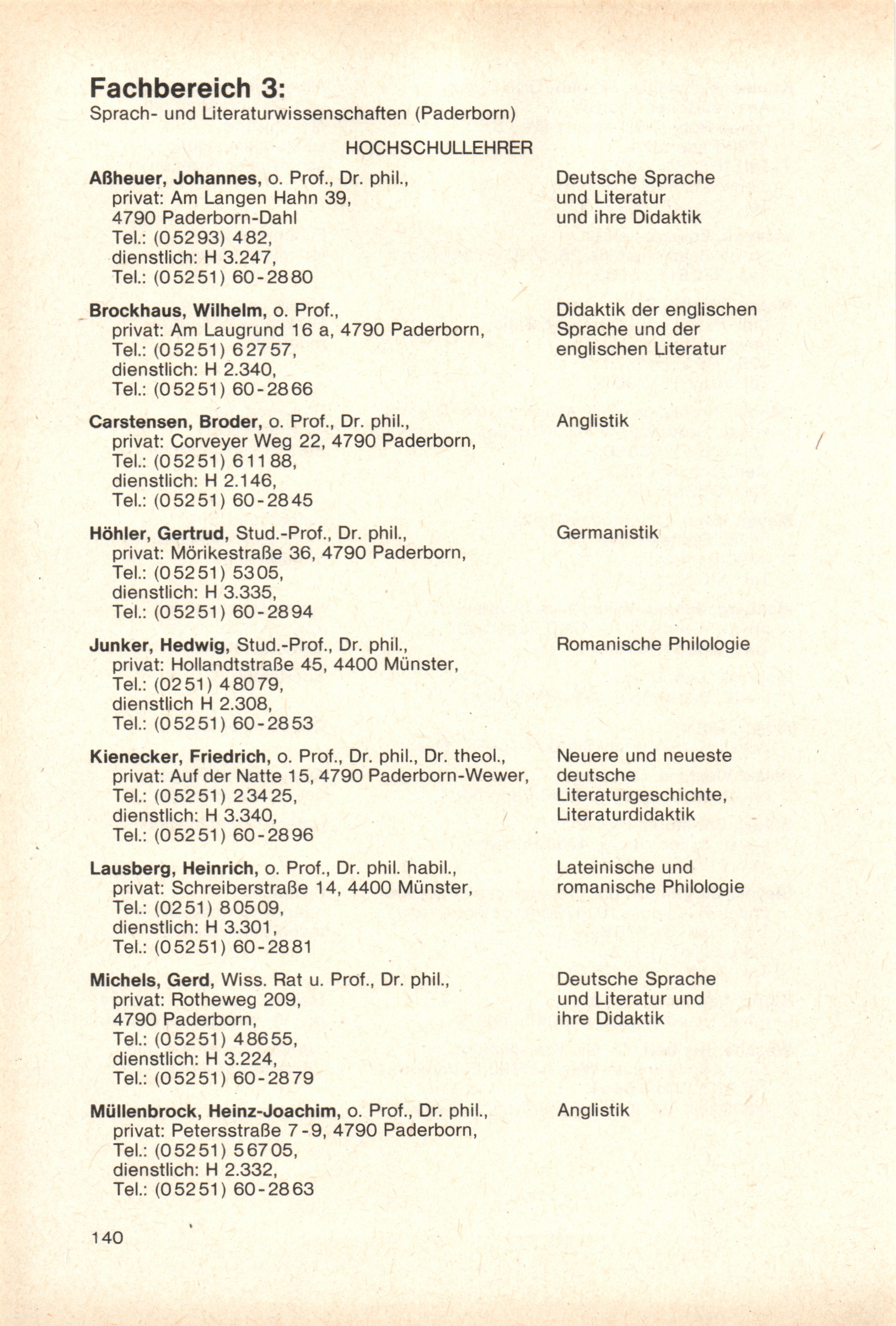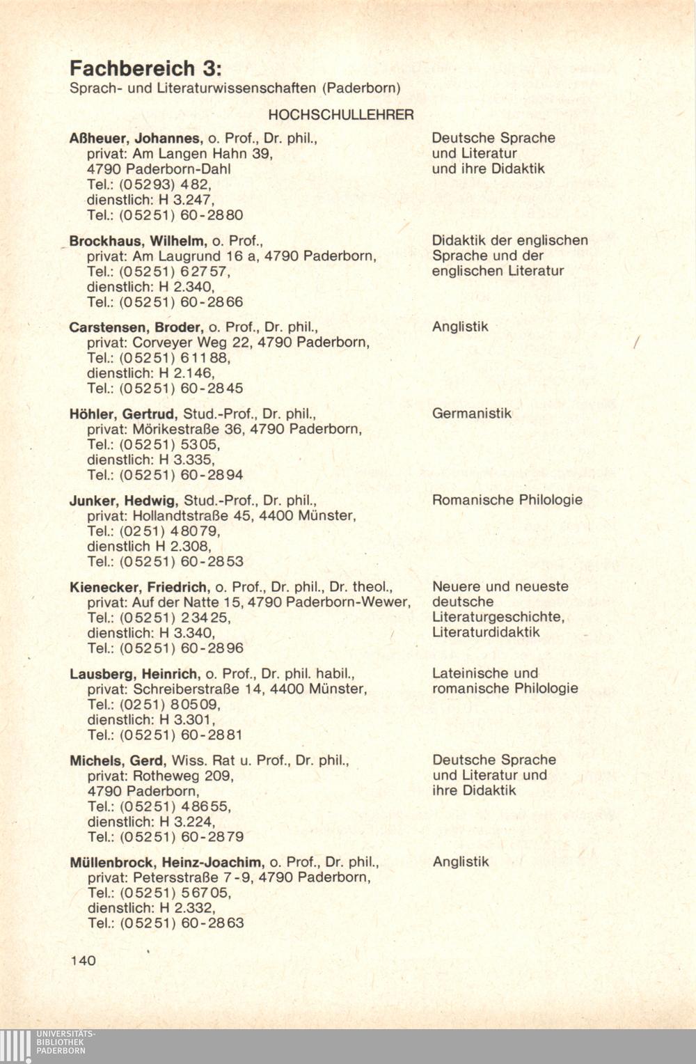 Personal- und Vorlesungsverzeichnis für die Gesamthochschule Paderborn