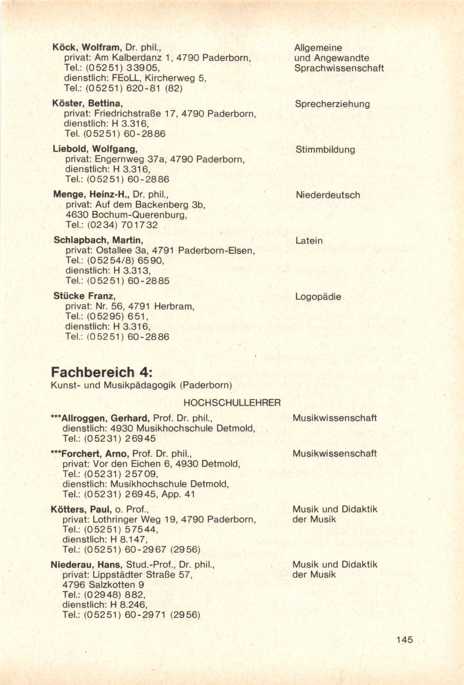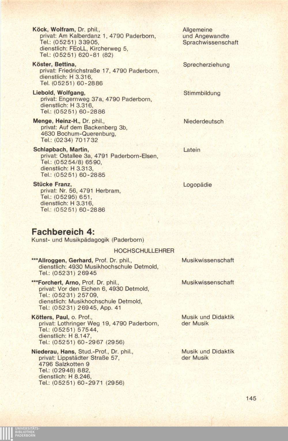 Personal- und Vorlesungsverzeichnis für die Gesamthochschule Paderborn