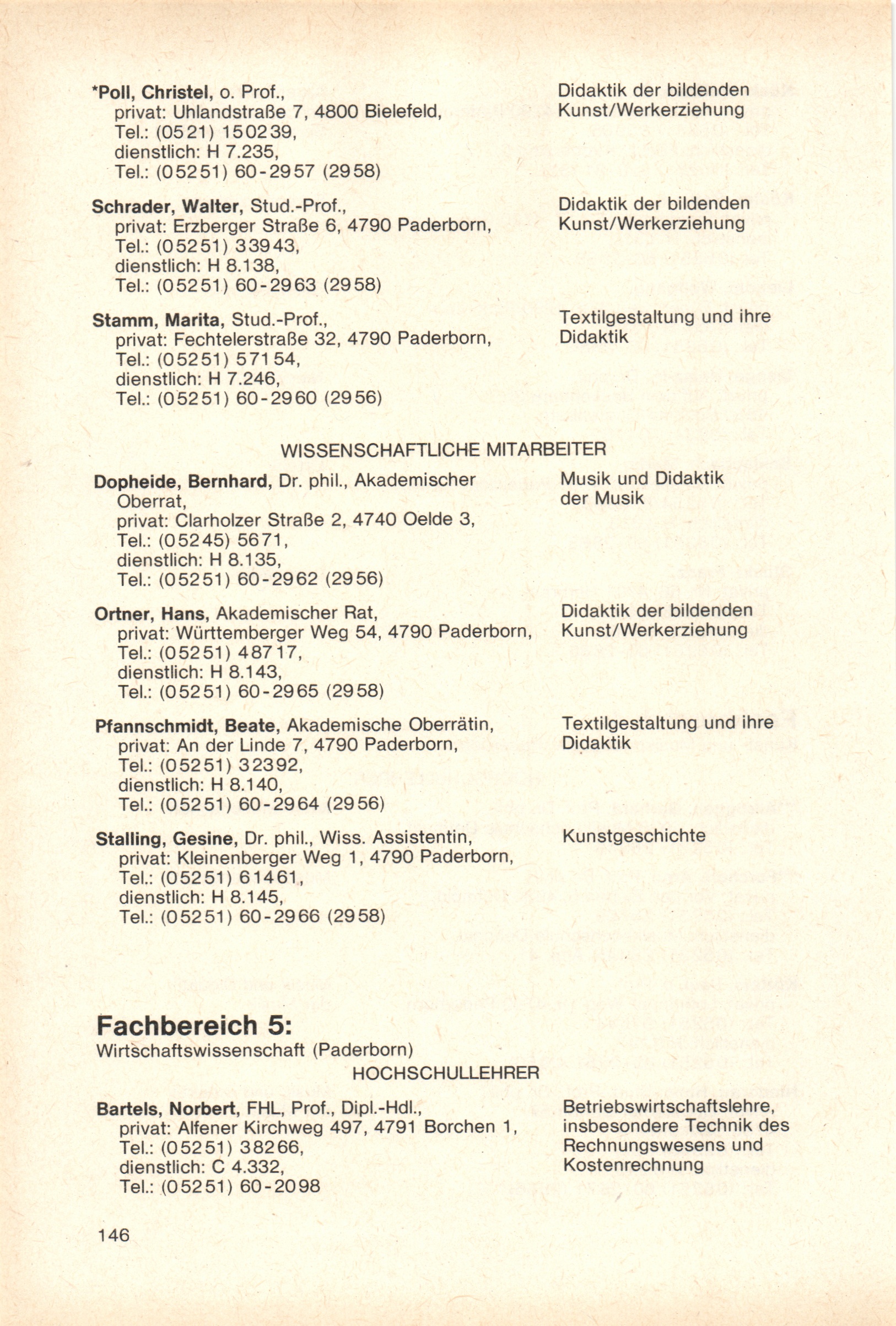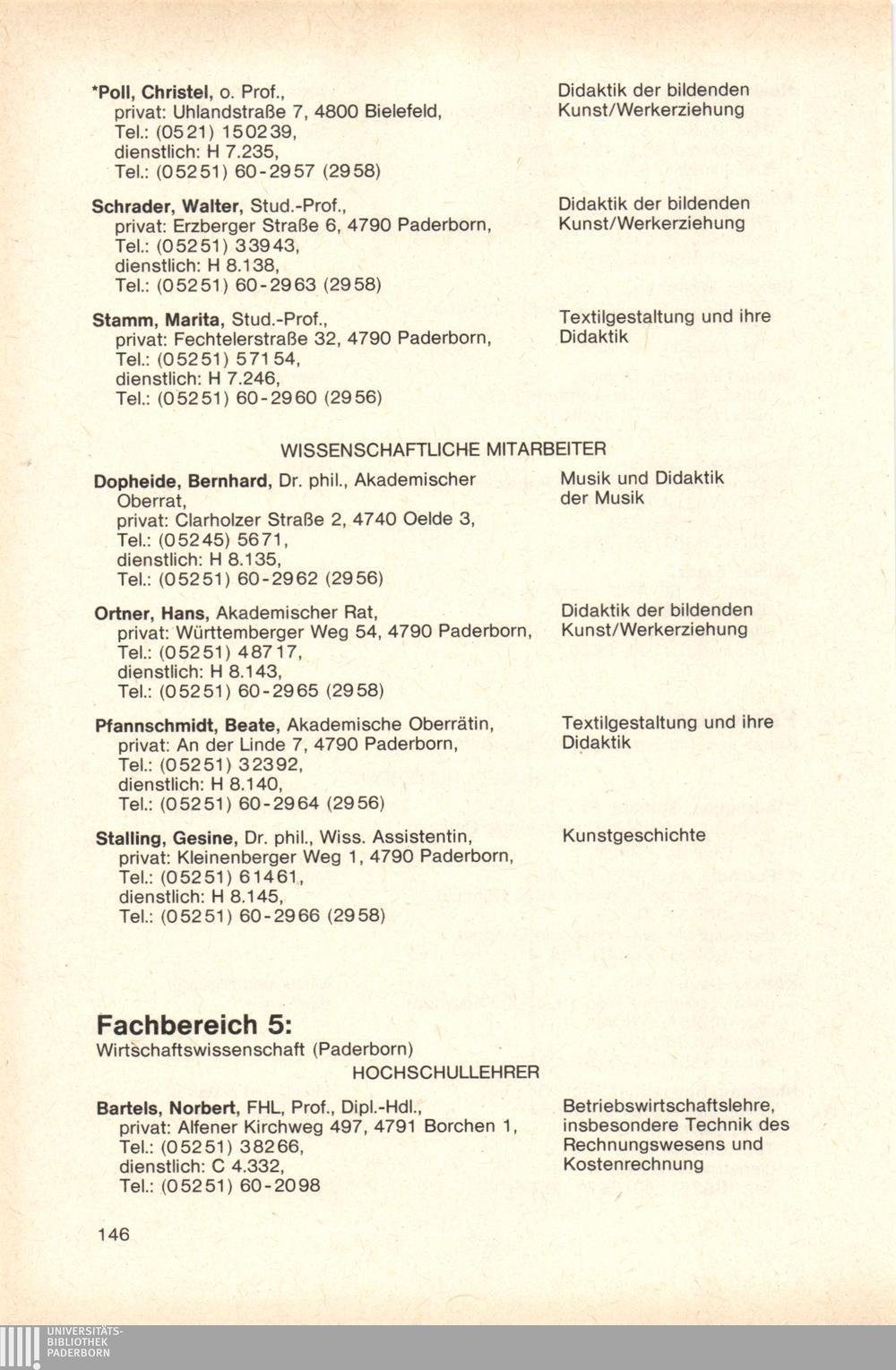 Personal- und Vorlesungsverzeichnis für die Gesamthochschule Paderborn