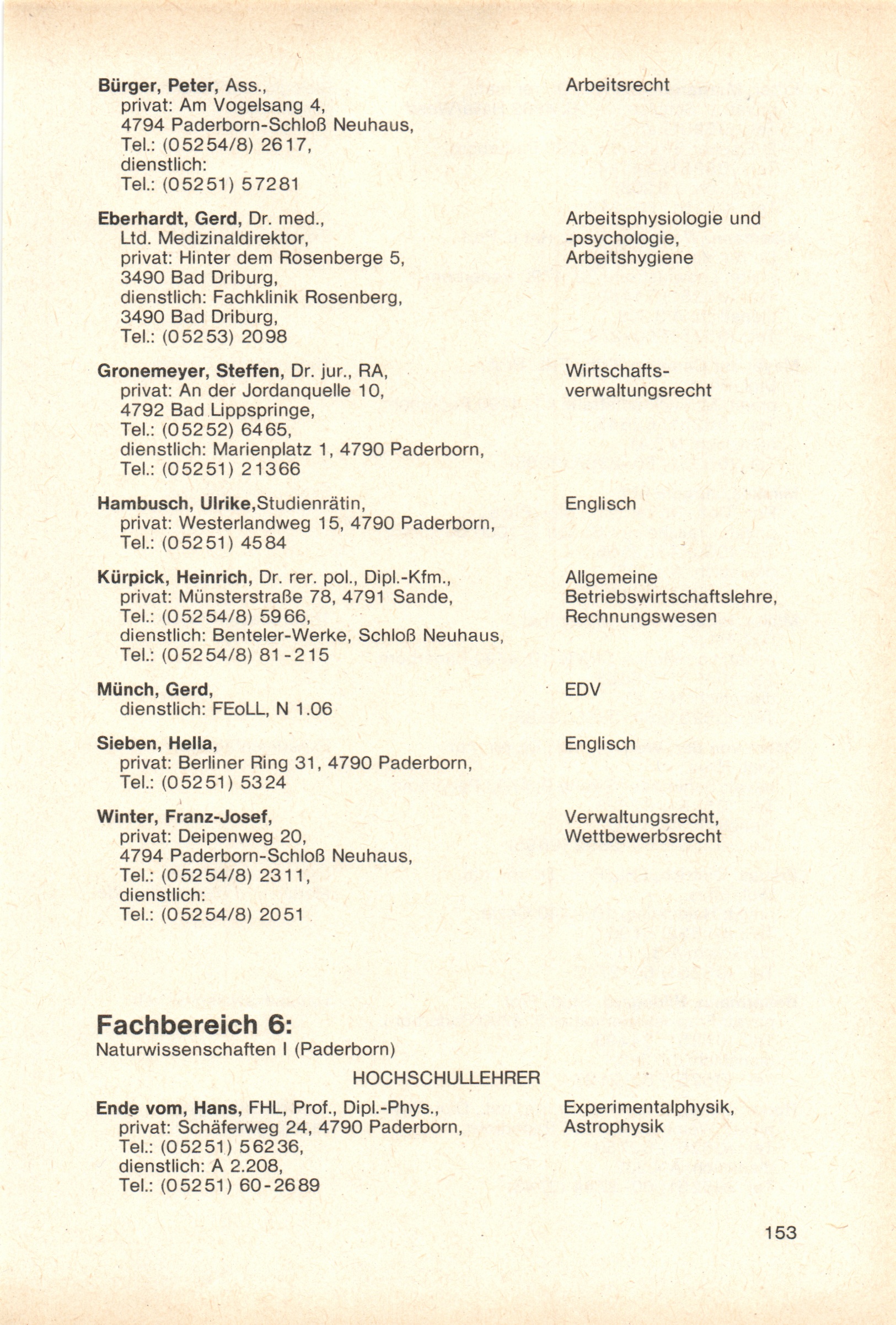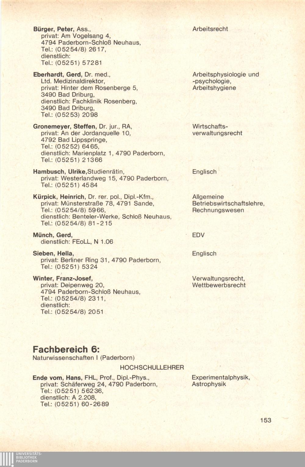 Personal- und Vorlesungsverzeichnis für die Gesamthochschule Paderborn
