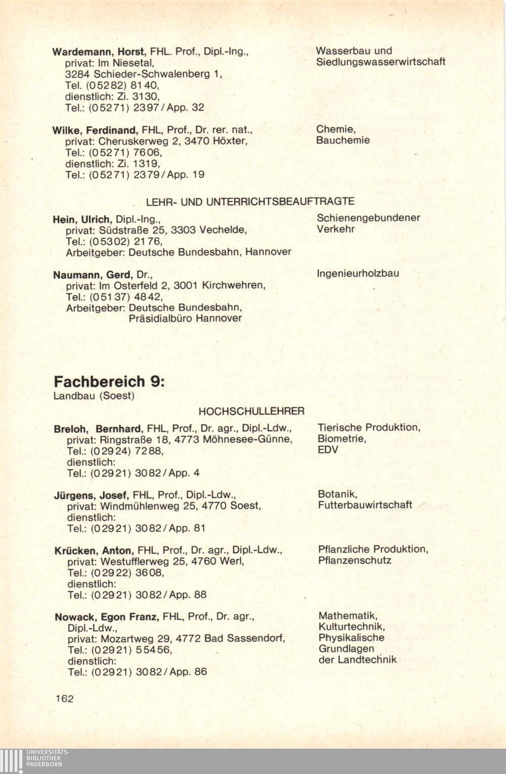Personal- und Vorlesungsverzeichnis für die Gesamthochschule Paderborn