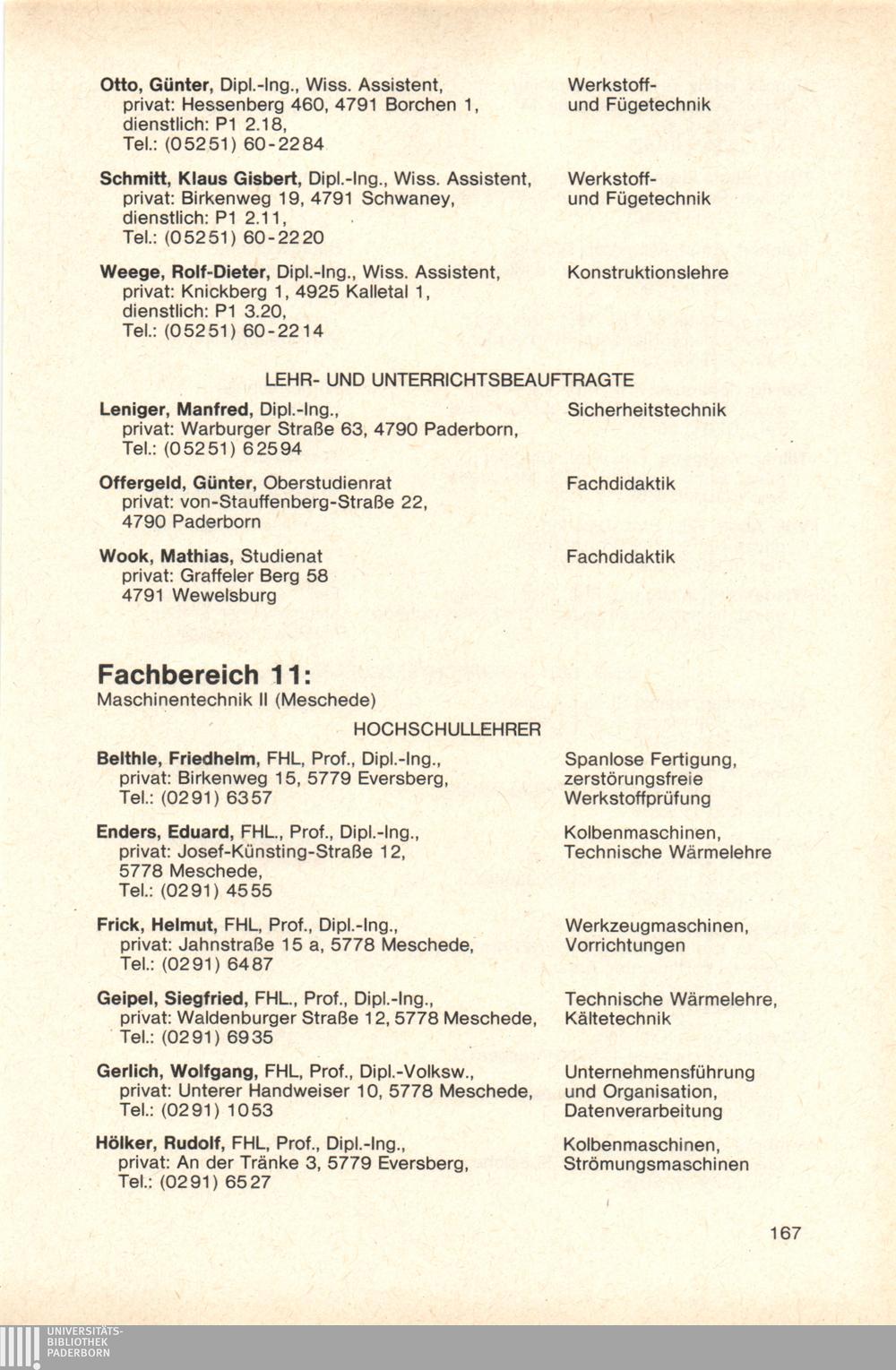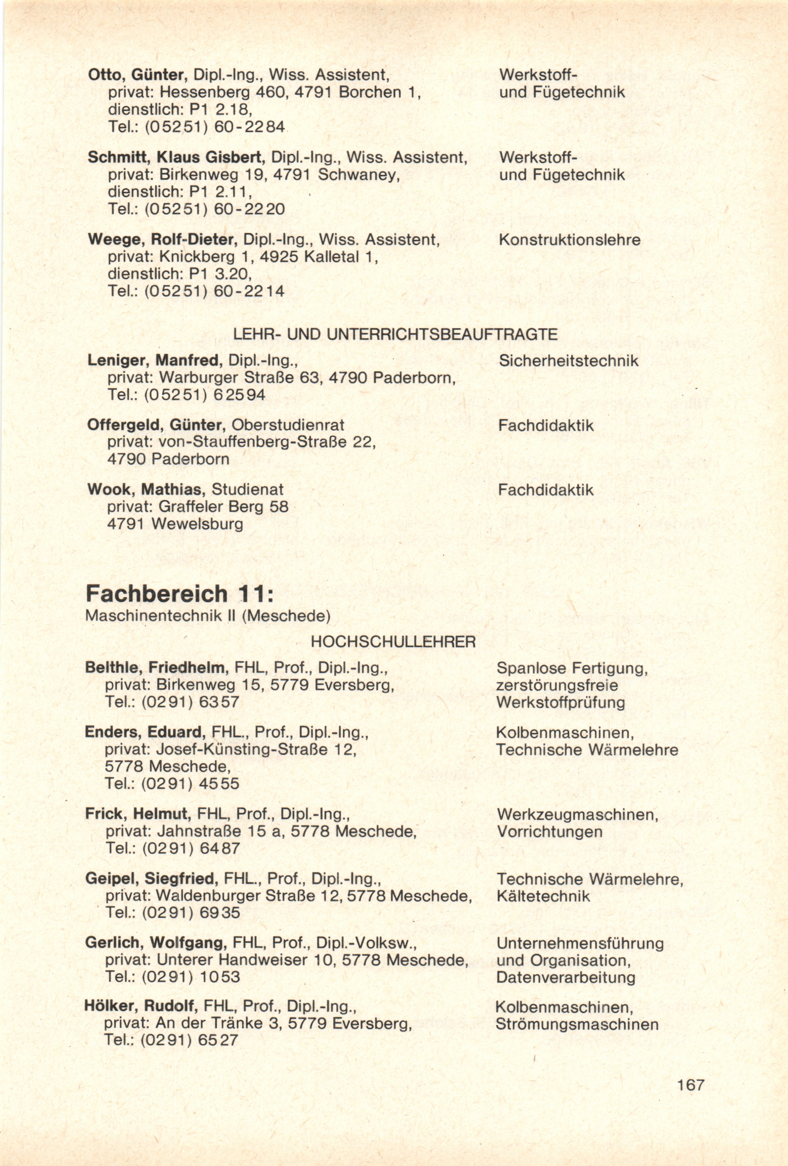 Personal- und Vorlesungsverzeichnis für die Gesamthochschule Paderborn