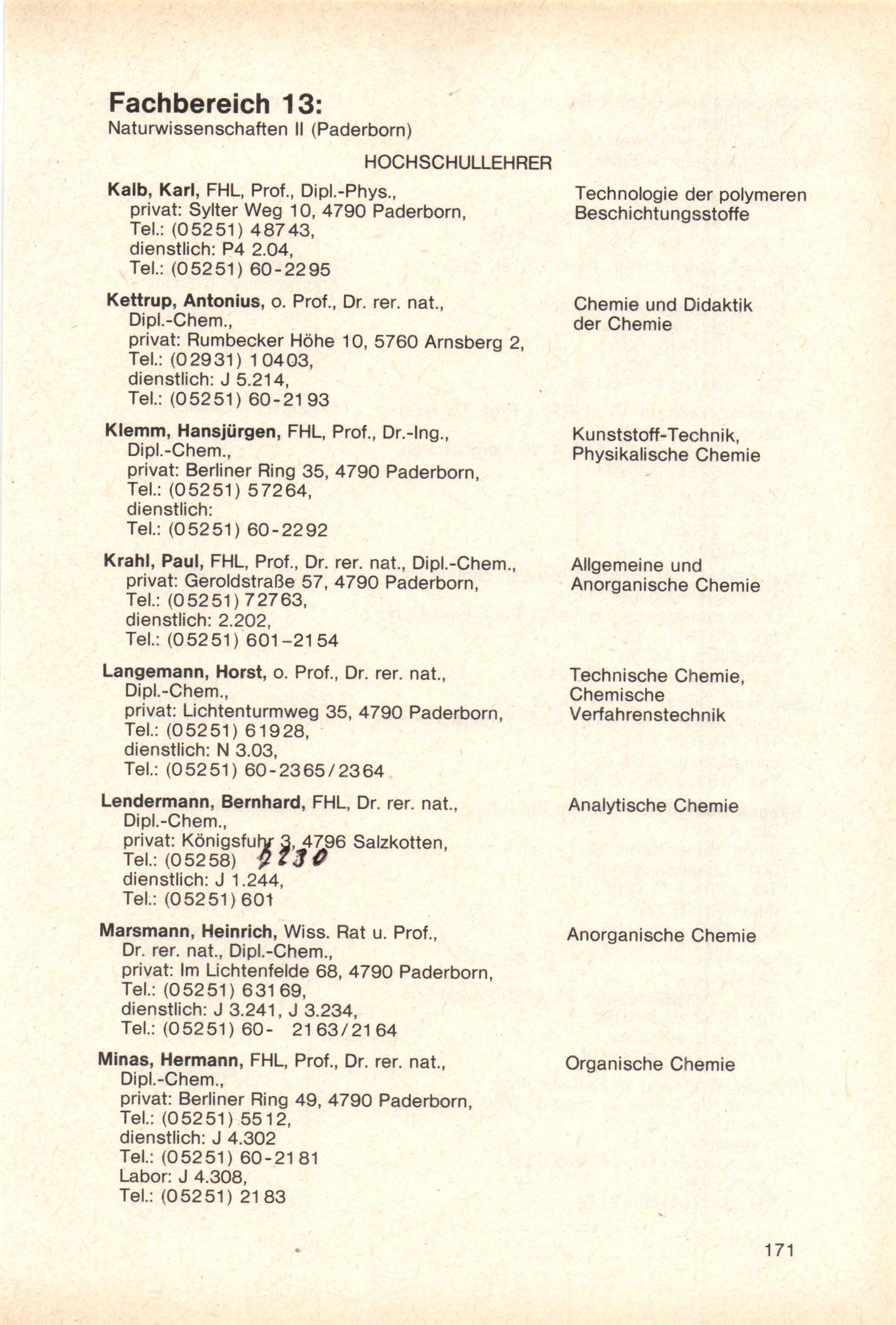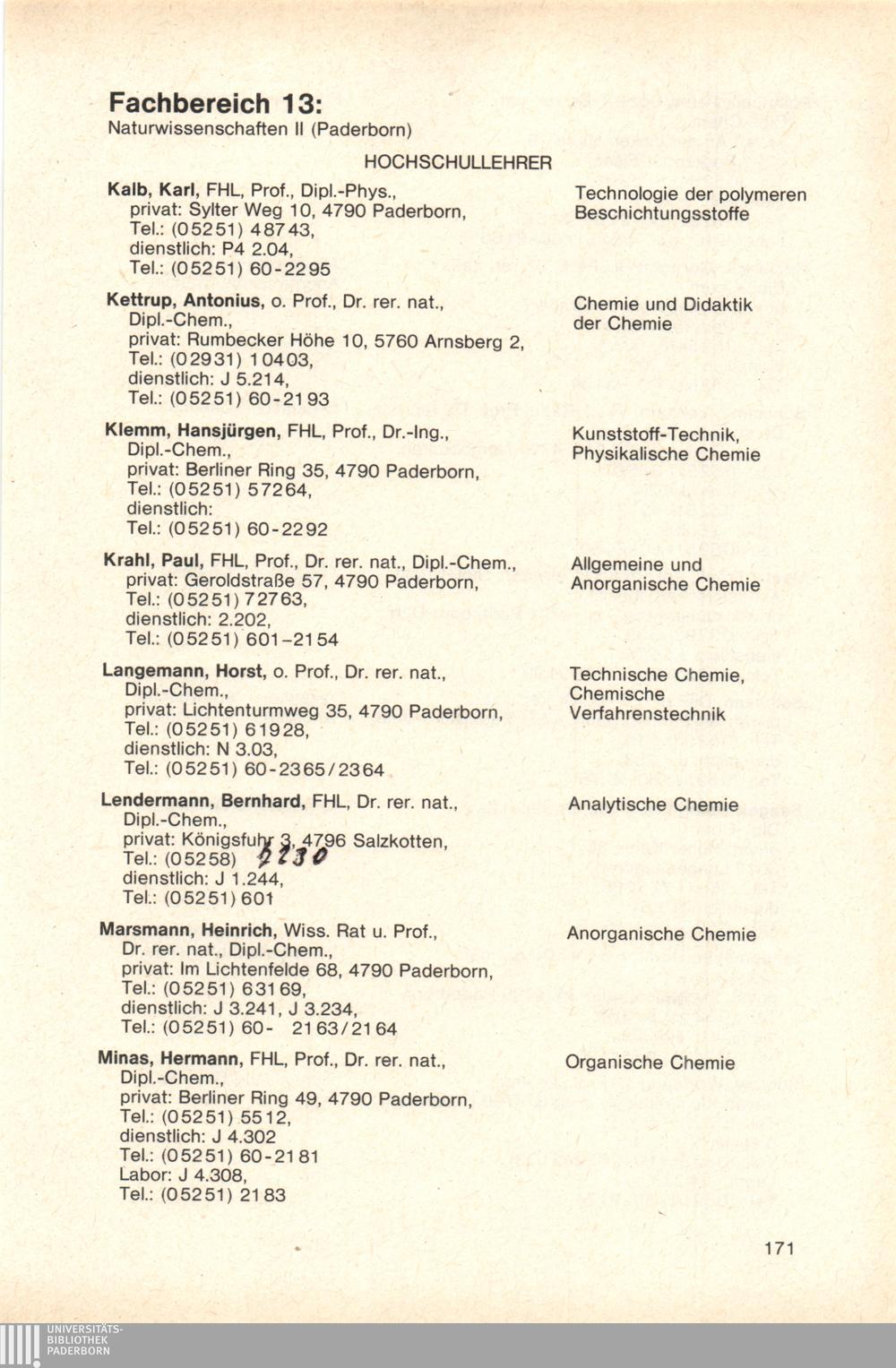 Personal- und Vorlesungsverzeichnis für die Gesamthochschule Paderborn