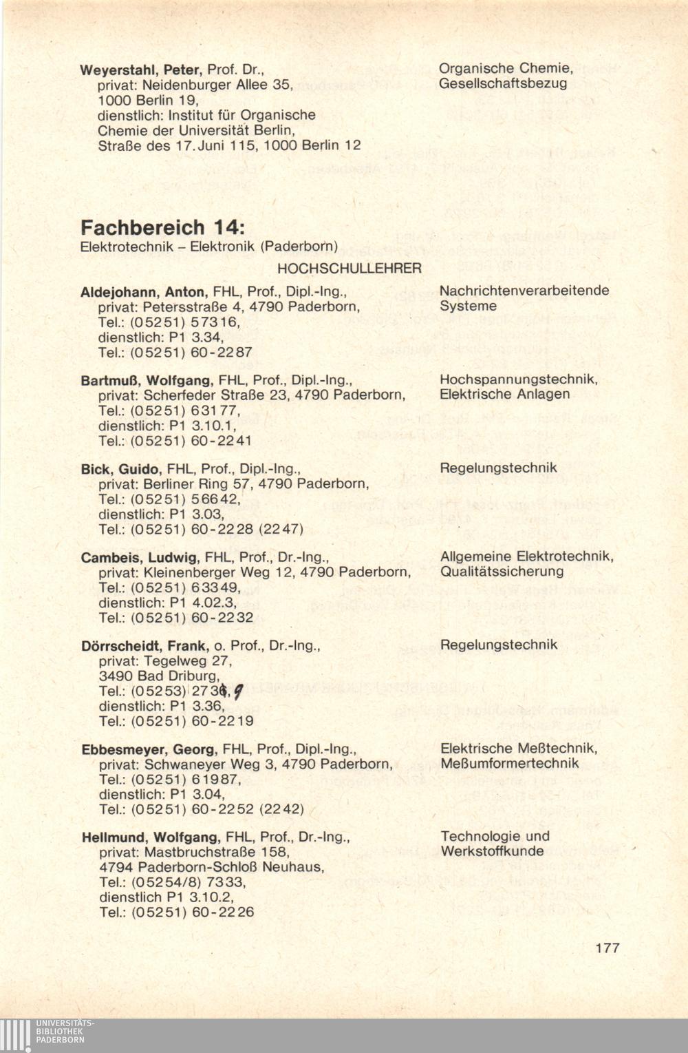 Fachbereich 14: Elektrotechnik - Elektronik (Paderborn)
