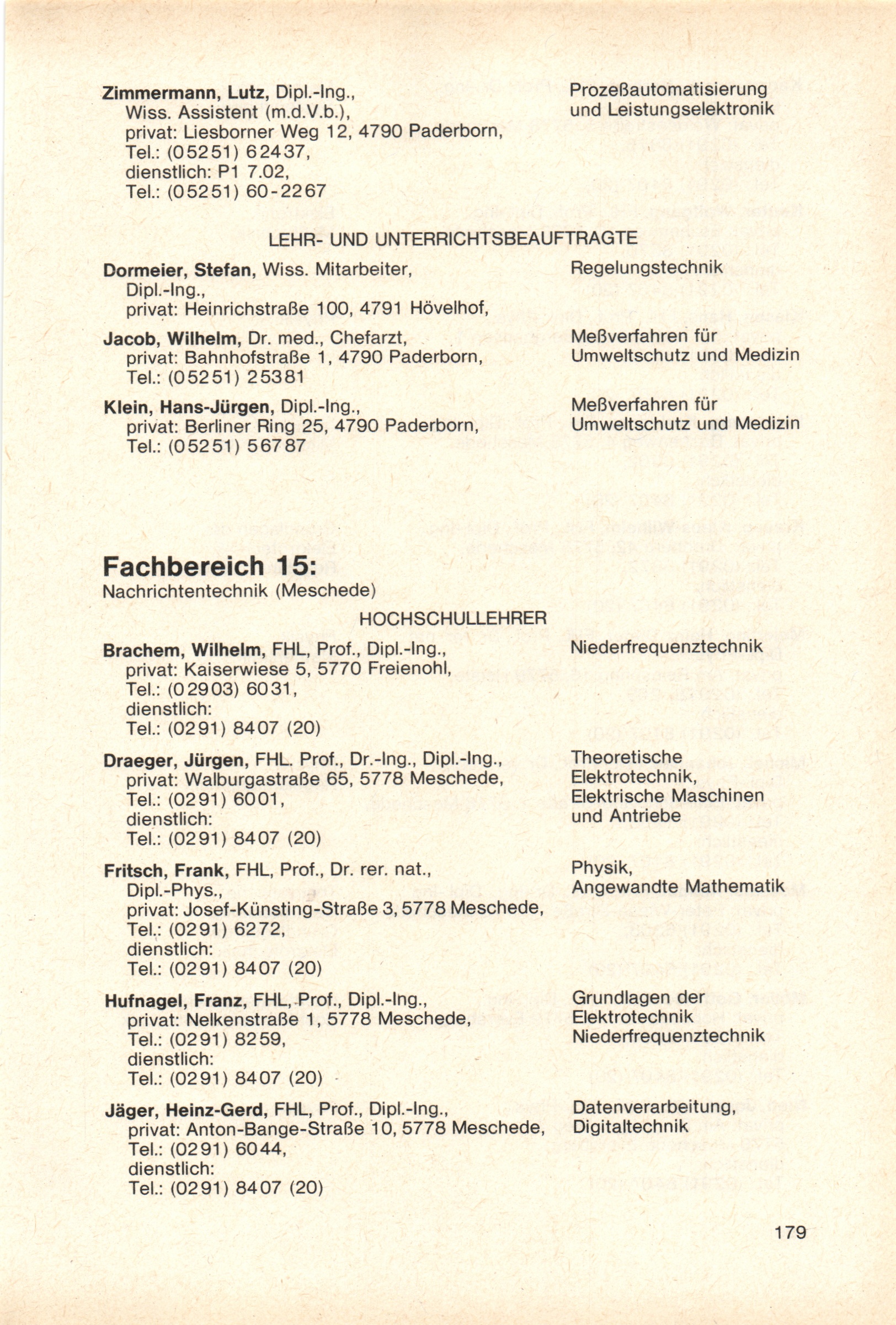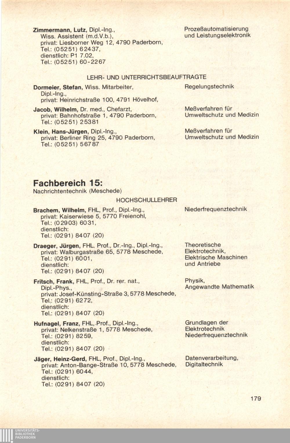 Personal- und Vorlesungsverzeichnis für die Gesamthochschule Paderborn